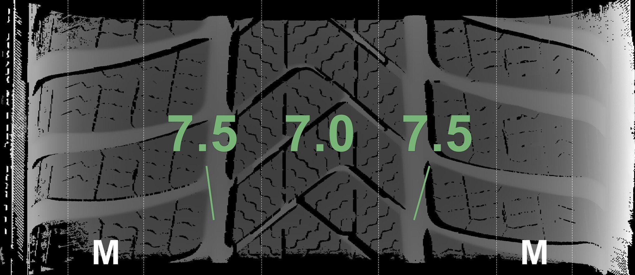 De gemeten profieldieptes en de details van de velgen zijn hierboven weergegeven.