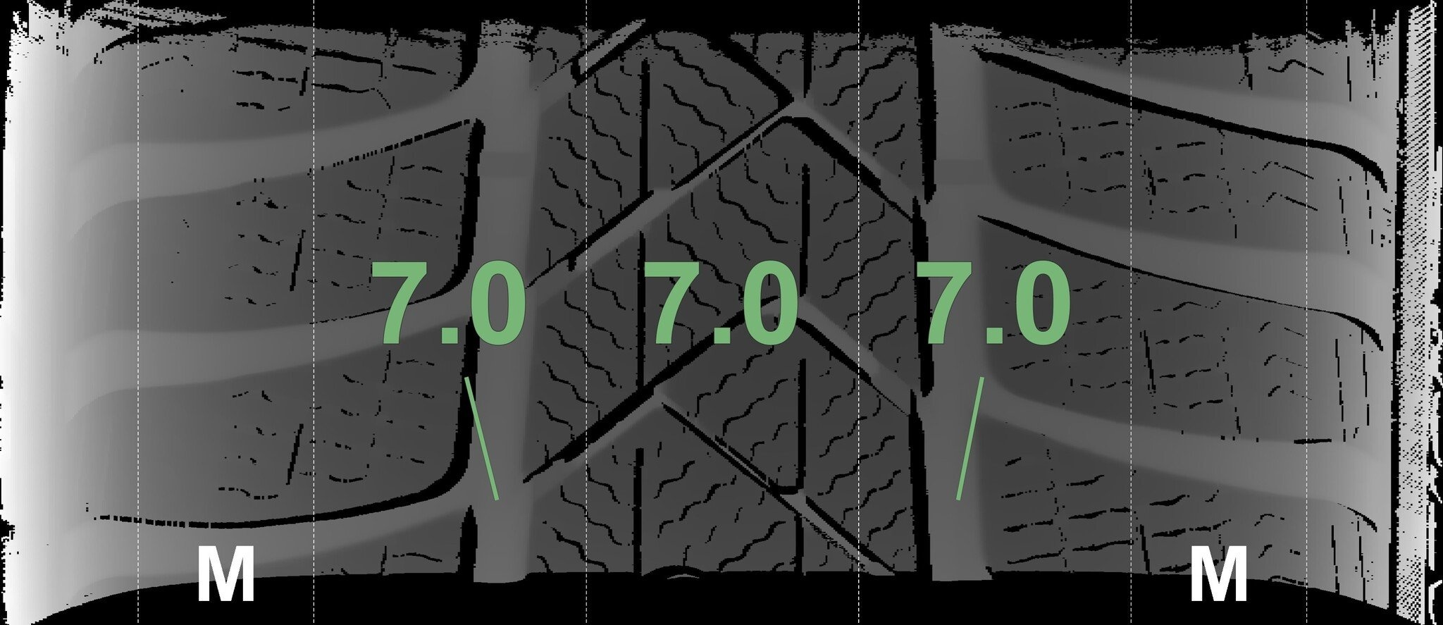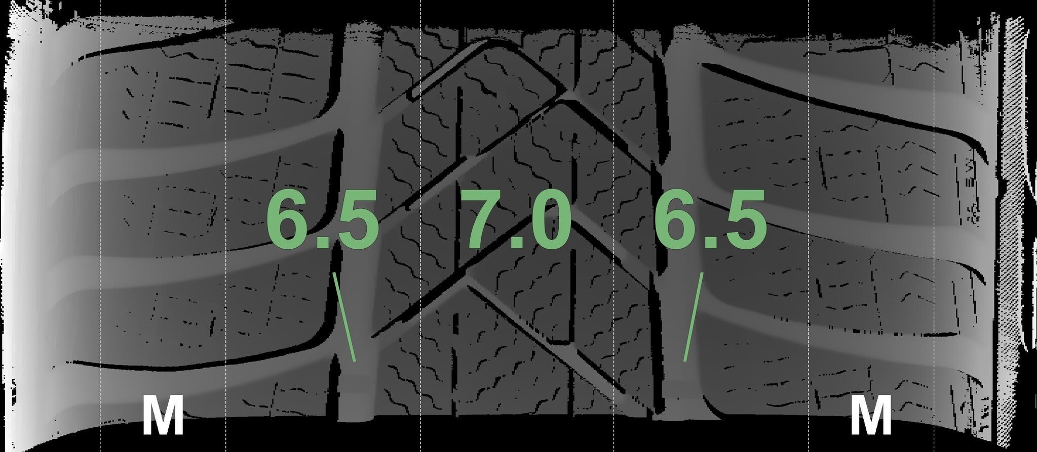 De gemeten profieldieptes en de details van de velgen zijn hierboven weergegeven.