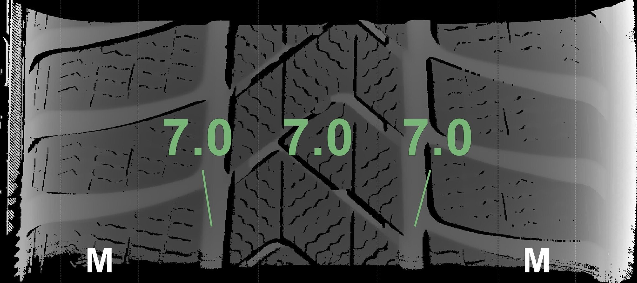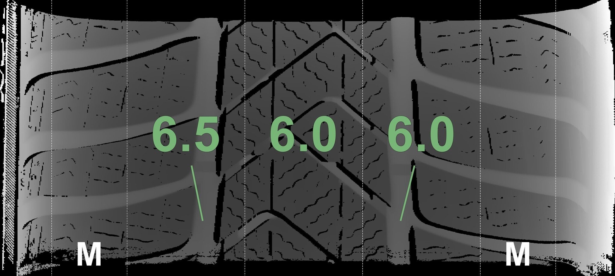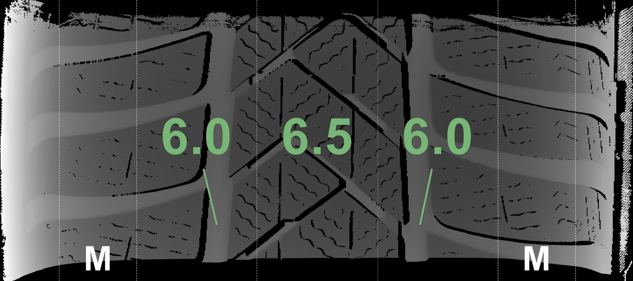 De gemeten profieldieptes en de details van de velgen zijn hierboven weergegeven.