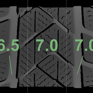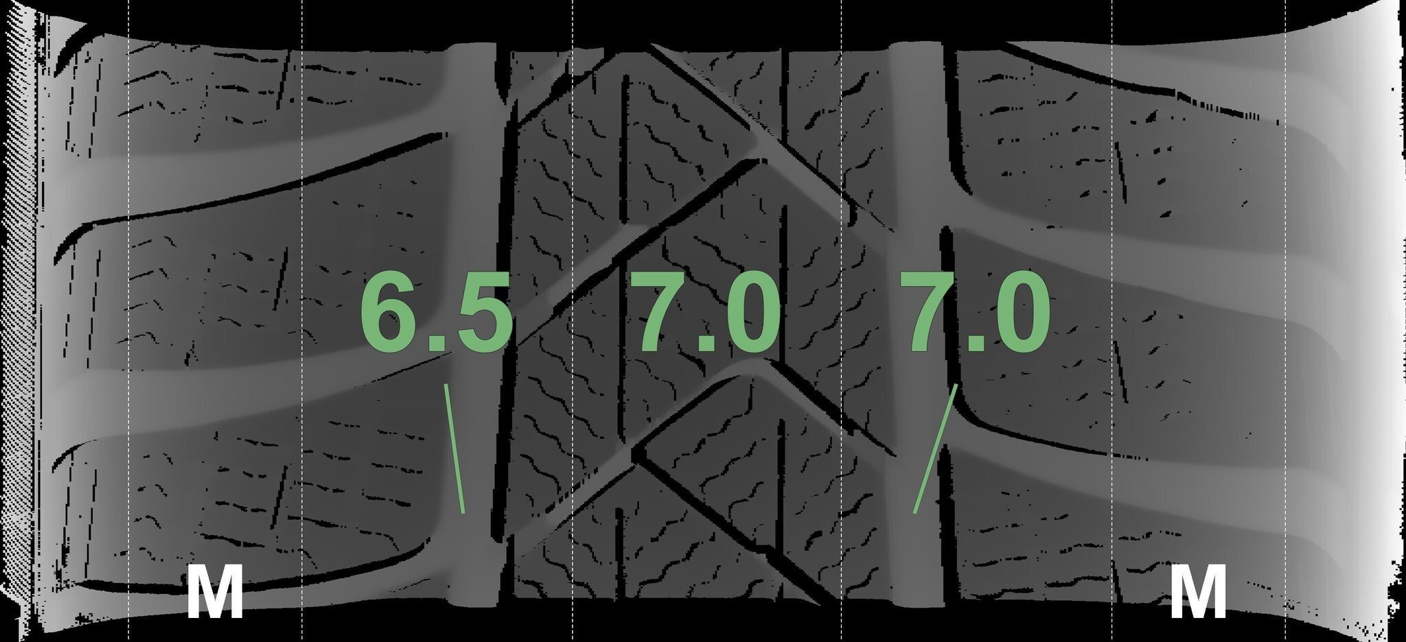De gemeten profieldieptes en de details van de velgen zijn hierboven weergegeven.