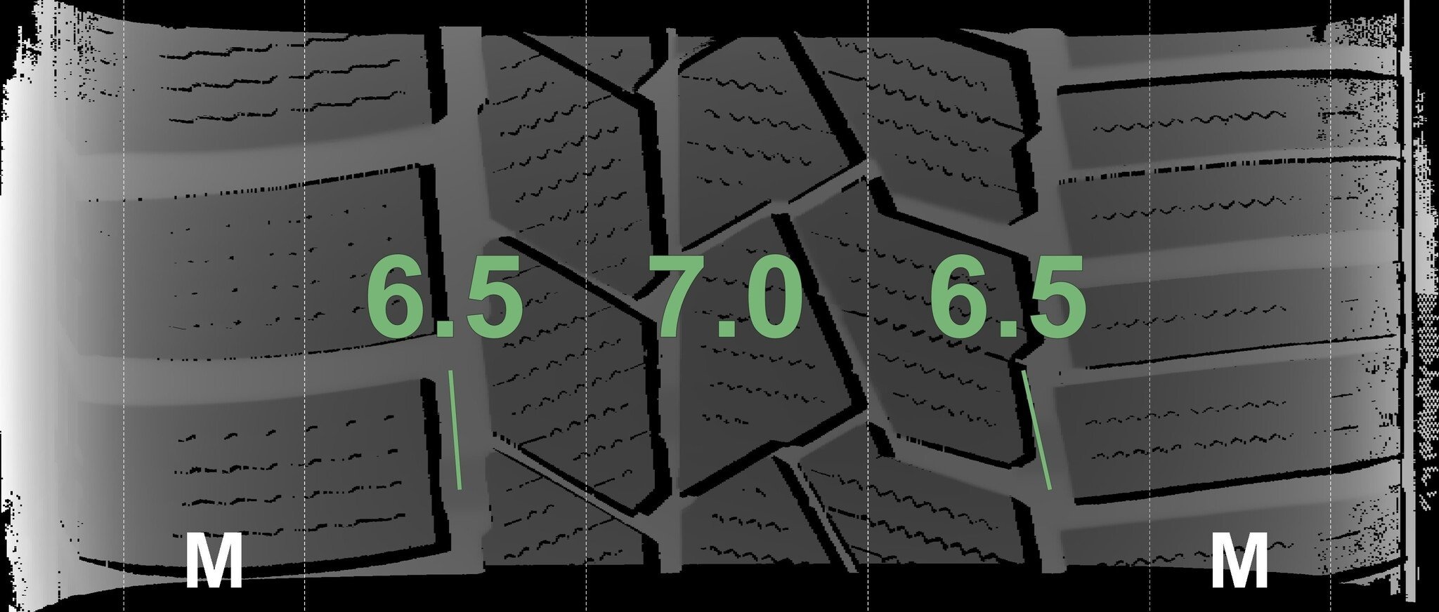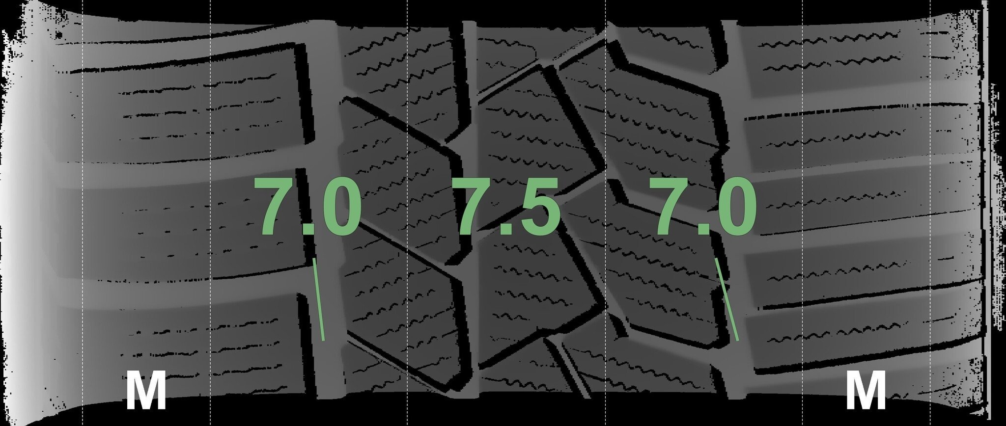 De gemeten profieldieptes en de details van de velgen zijn hierboven weergegeven.