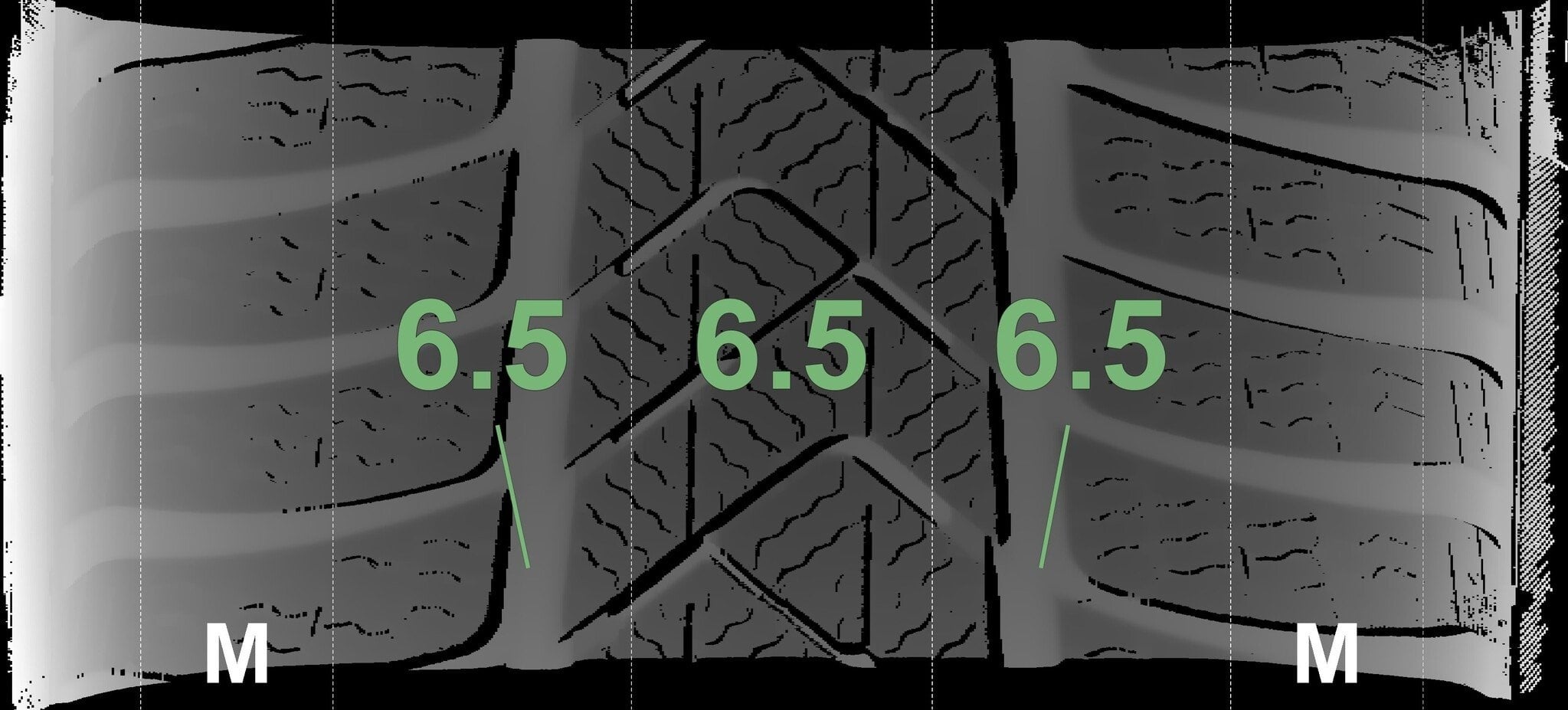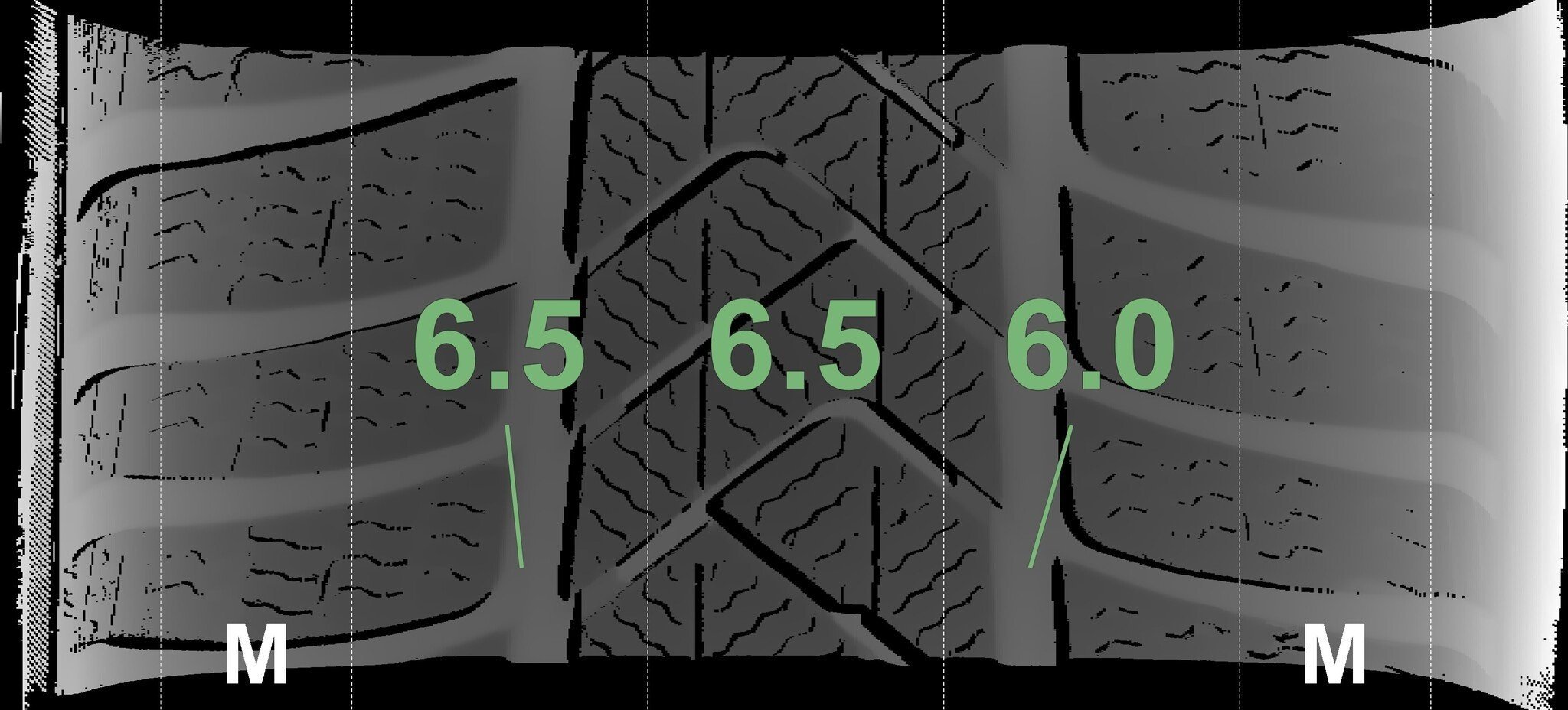 De gemeten profieldieptes en de details van de velgen zijn hierboven weergegeven.