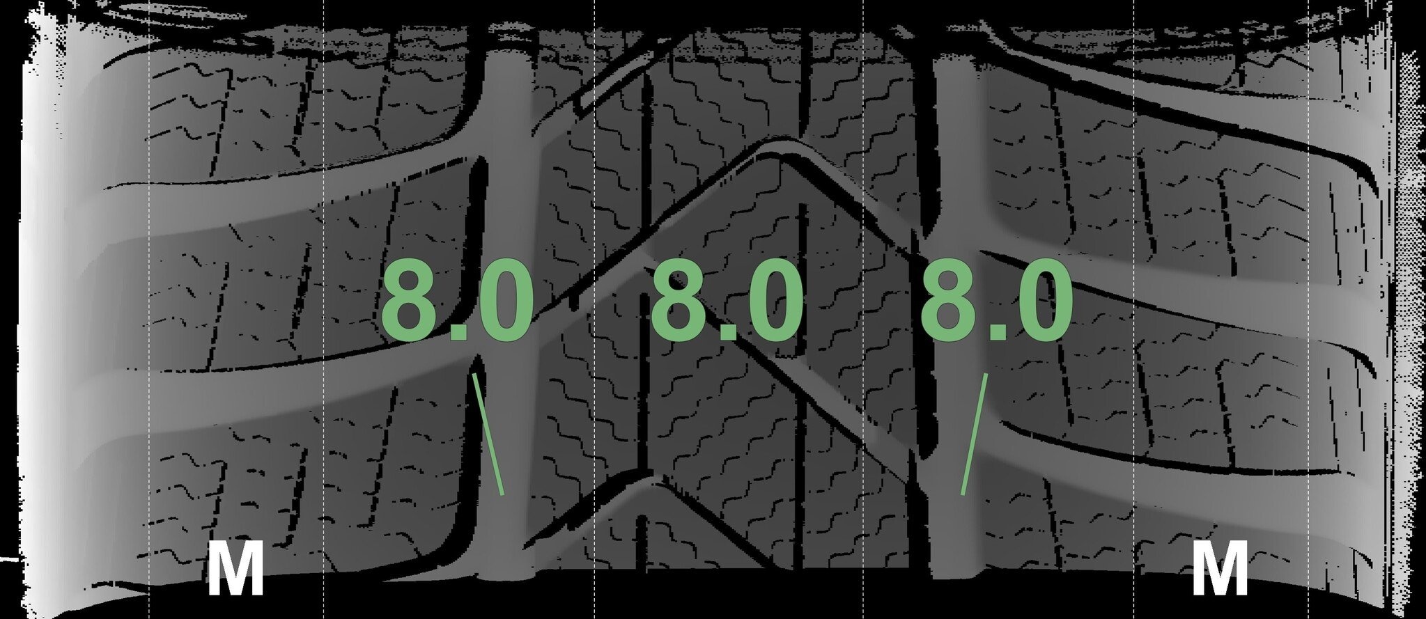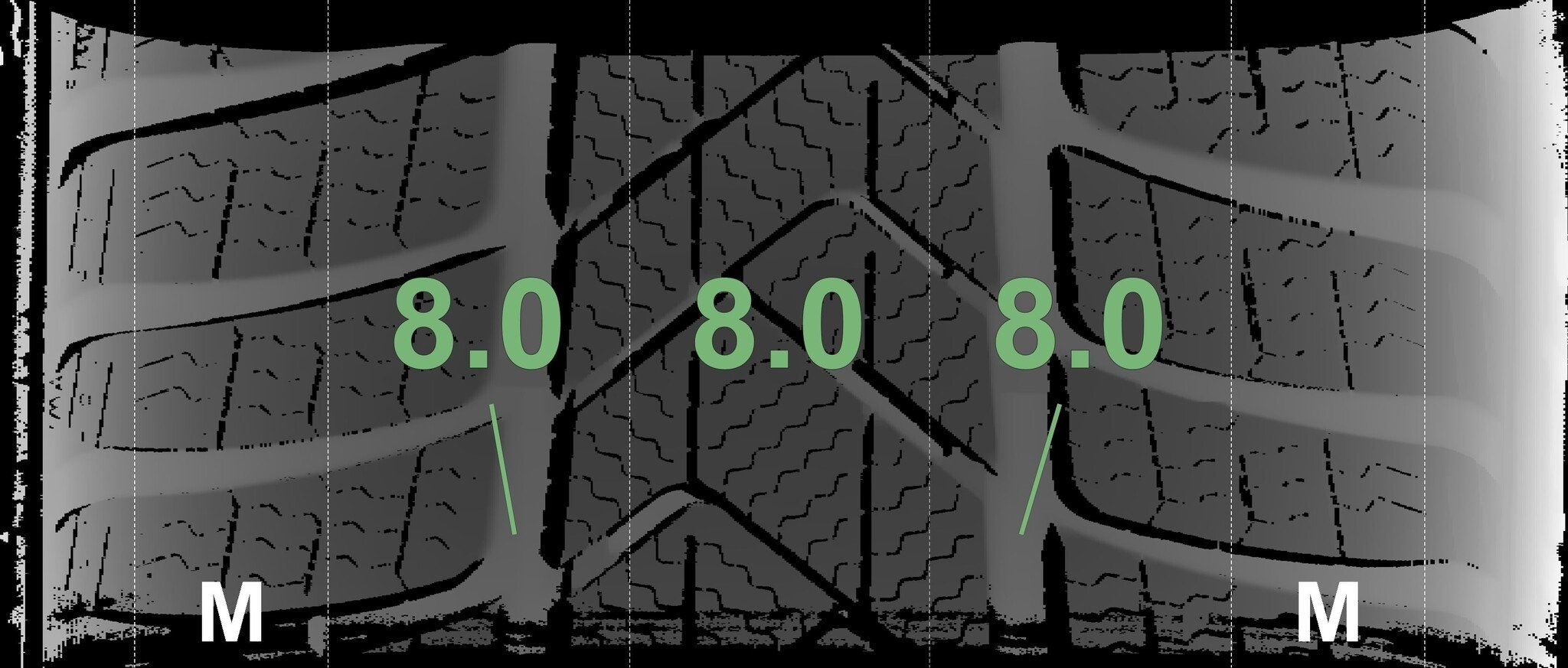 De gemeten profieldieptes en de details van de velgen zijn hierboven weergegeven.