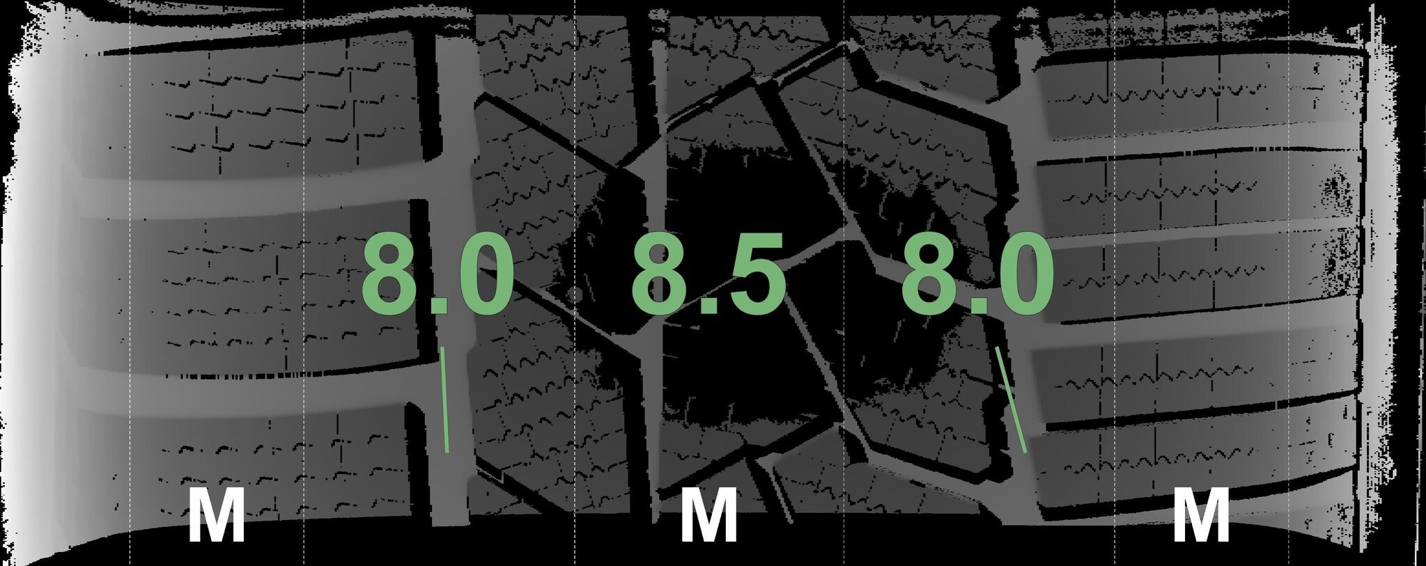 | Conditie | Profieldiepte | DOT | Rechts Voor | Nieuw | 8.5 mm | 2325 |