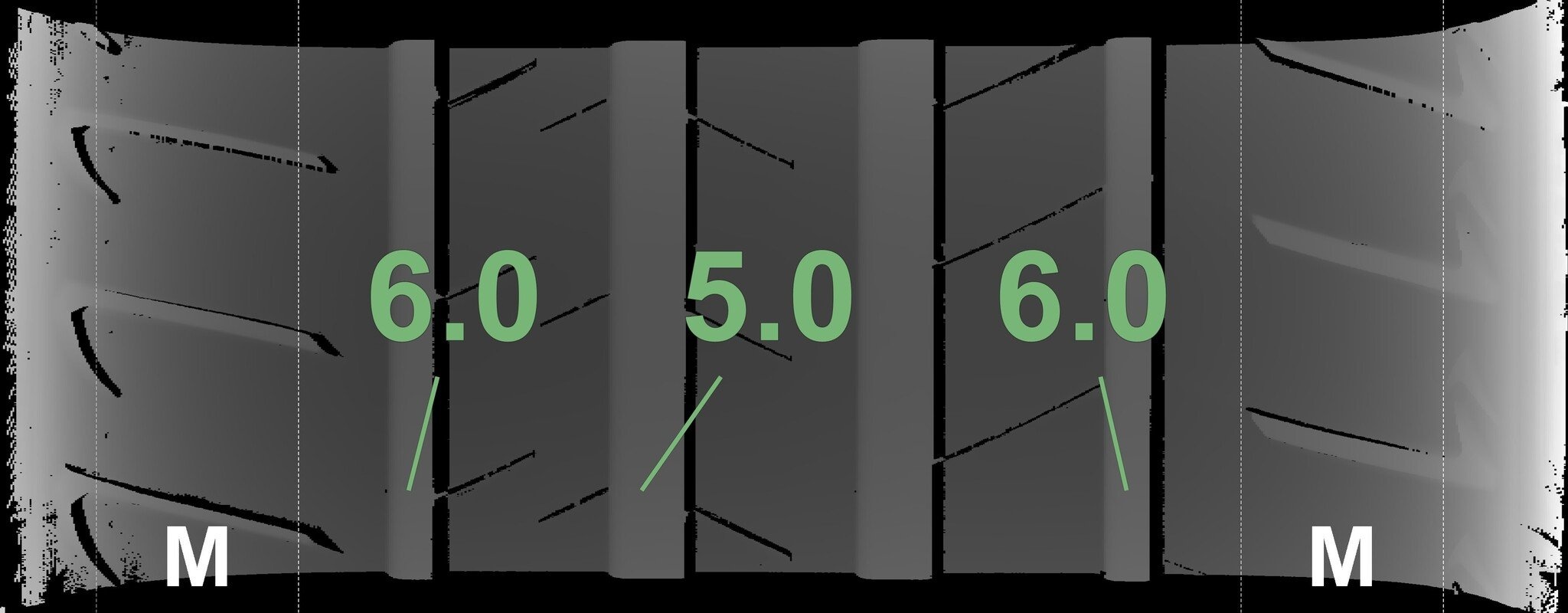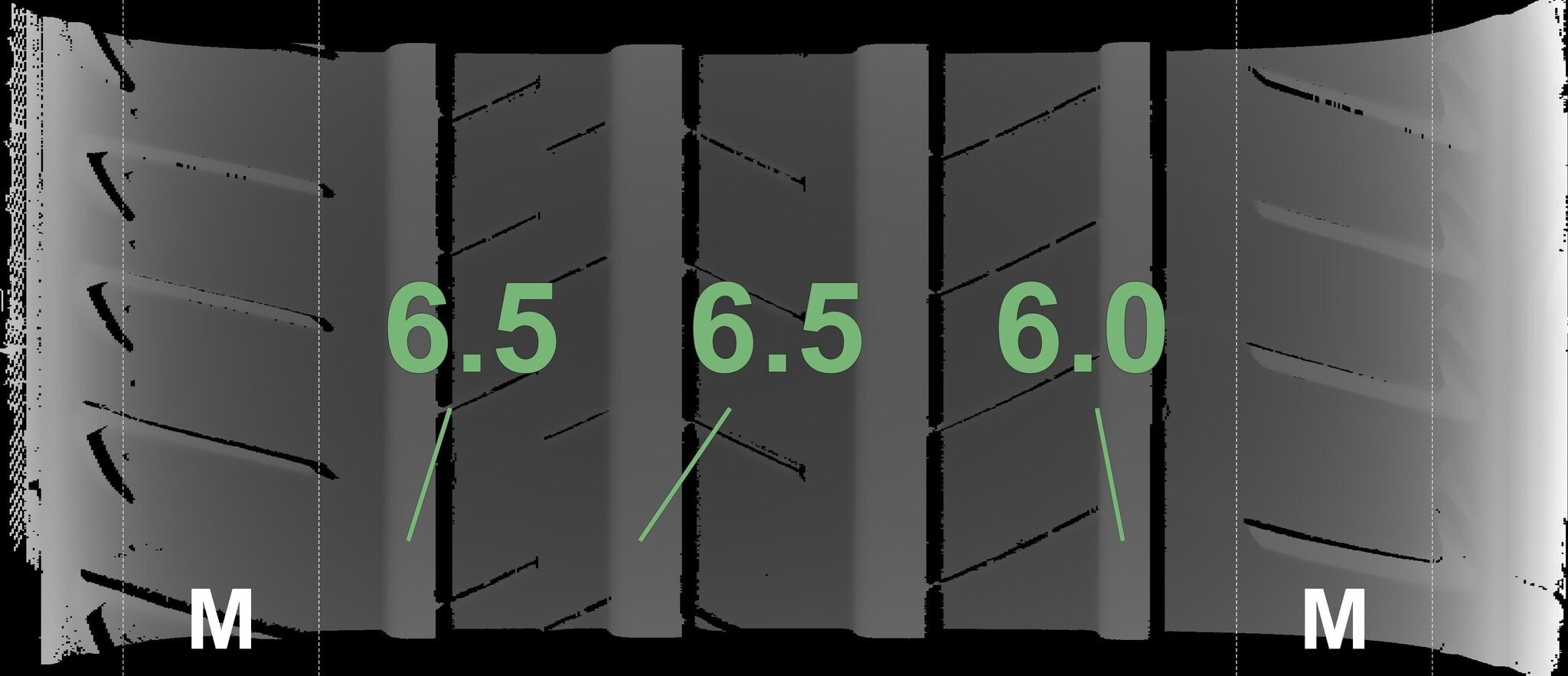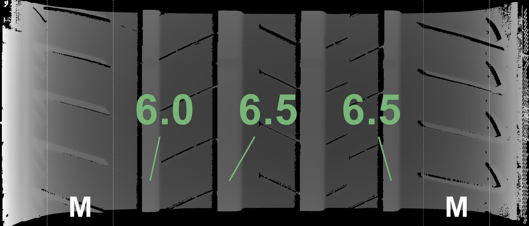 De gemeten profieldieptes en de details van de velgen zijn hierboven weergegeven.