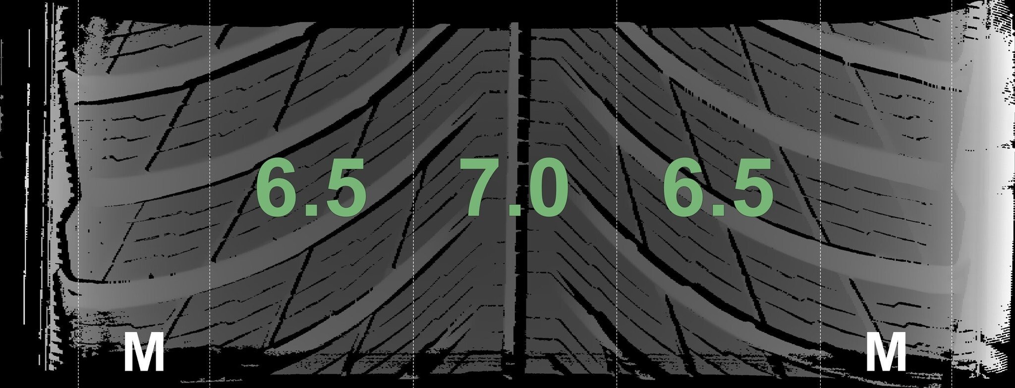 De gemeten profieldieptes en de details van de velgen zijn hierboven weergegeven.