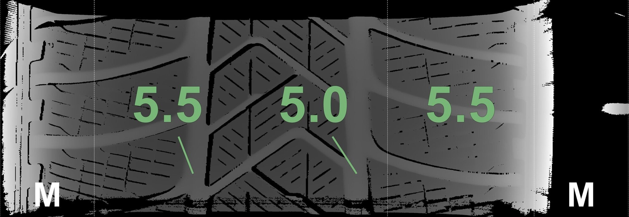 De gemeten profieldieptes en de details van de velgen zijn hierboven weergegeven.