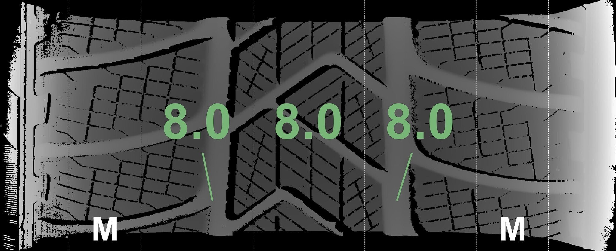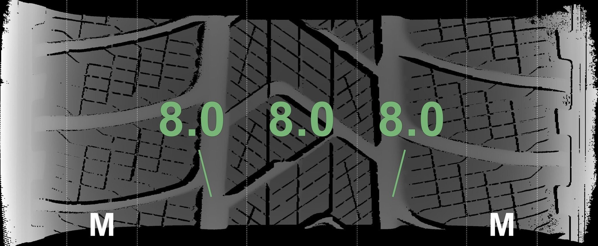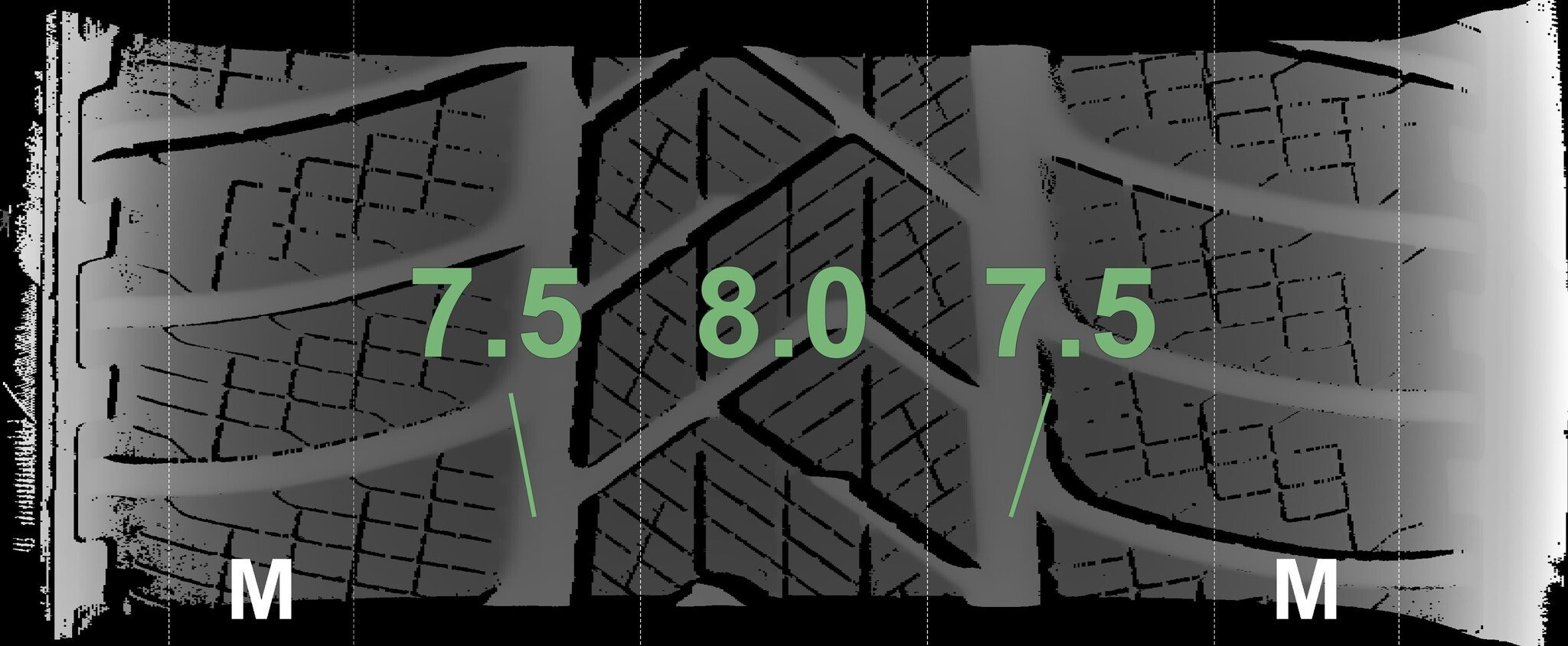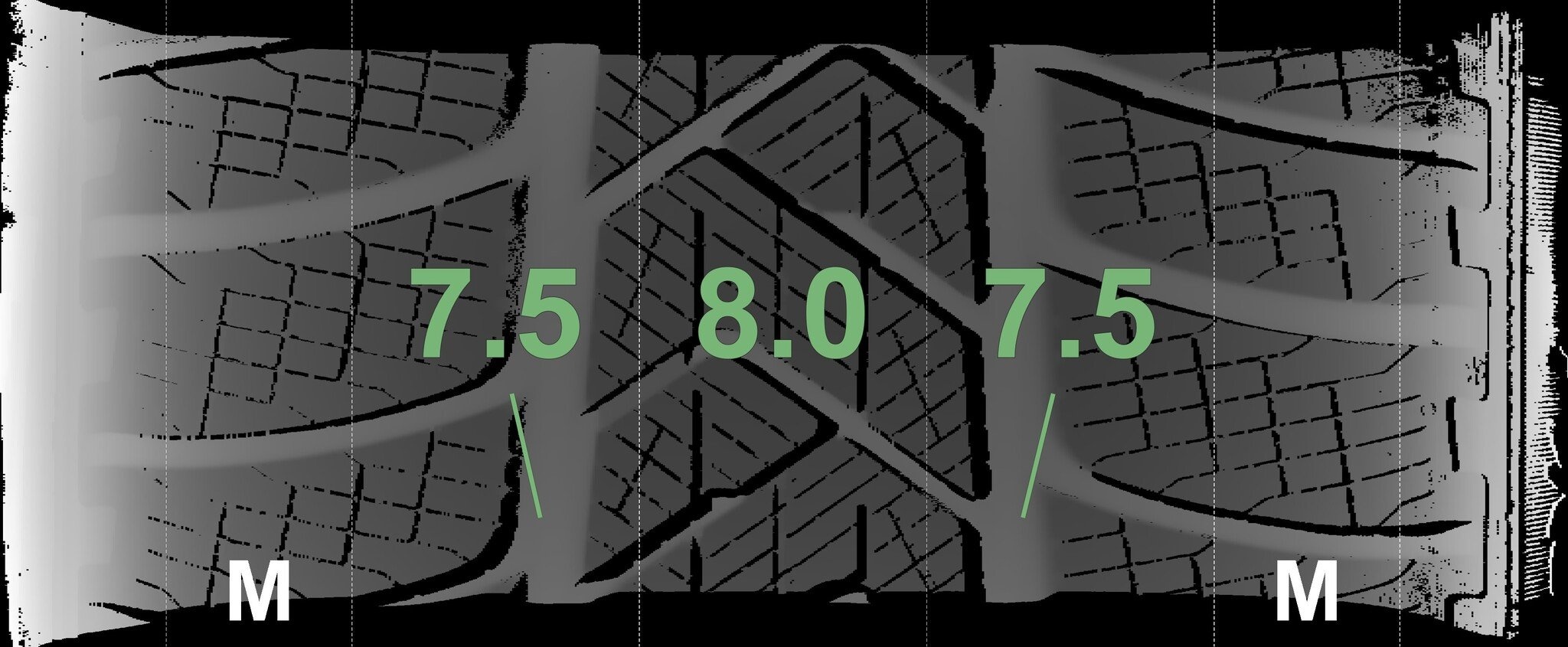 De gemeten profieldieptes en de details van de velgen zijn hierboven weergegeven.