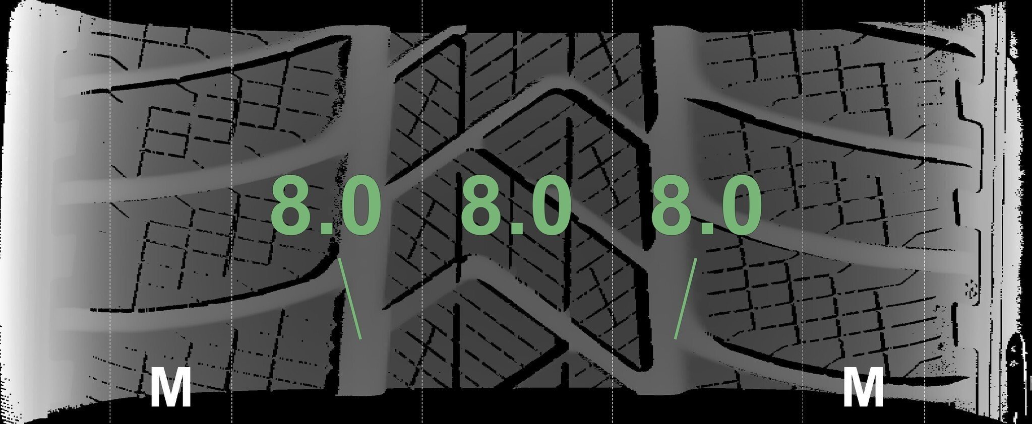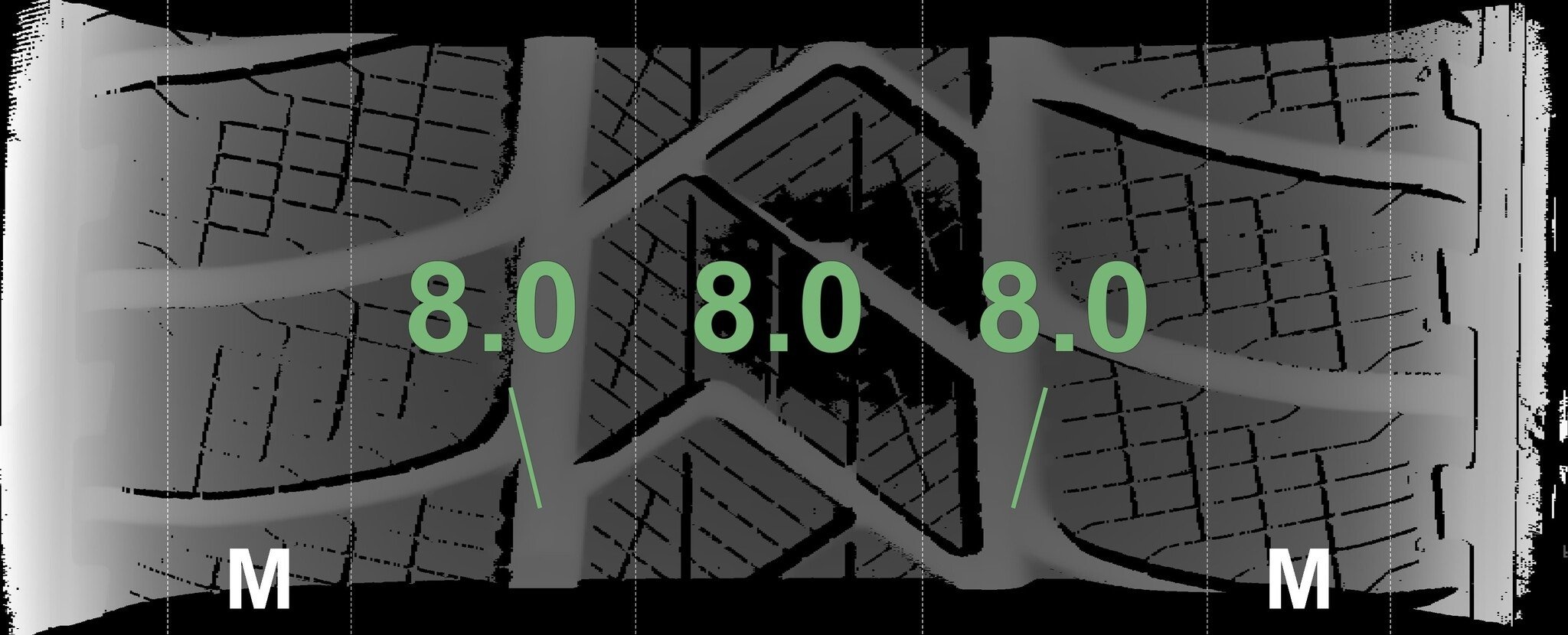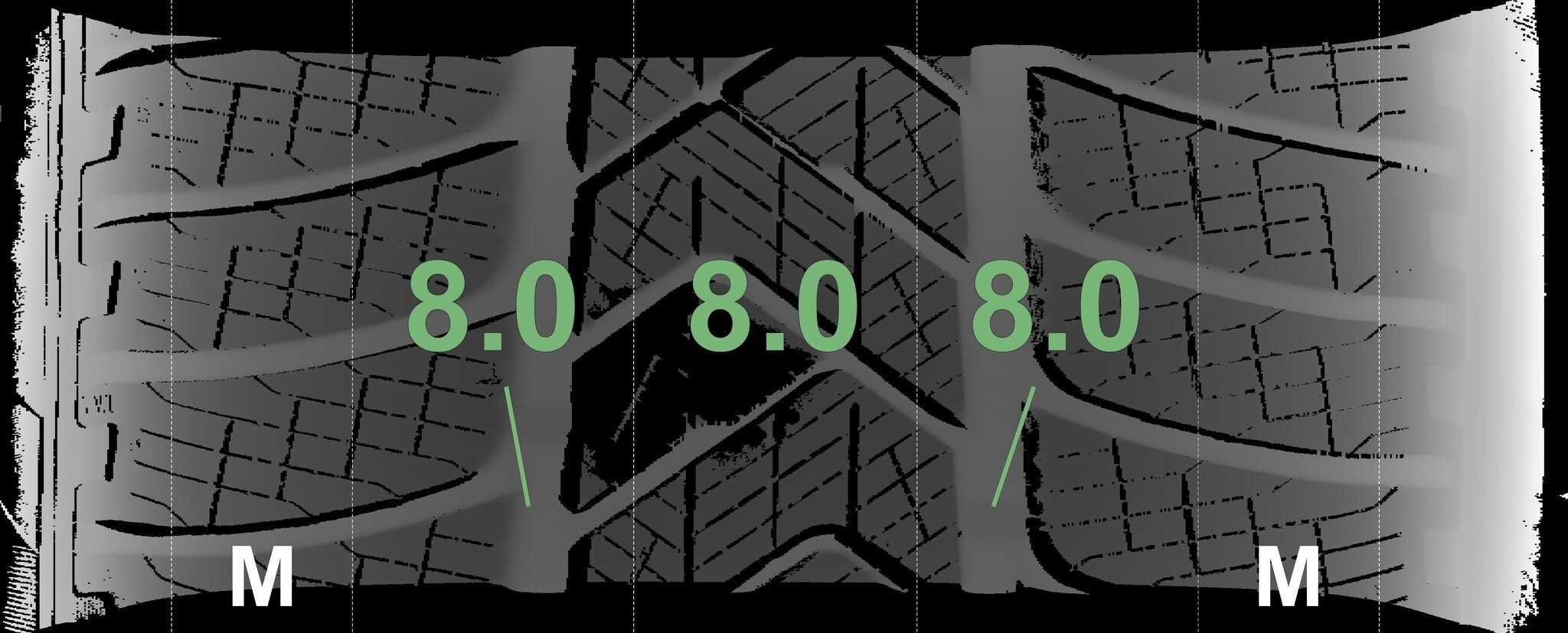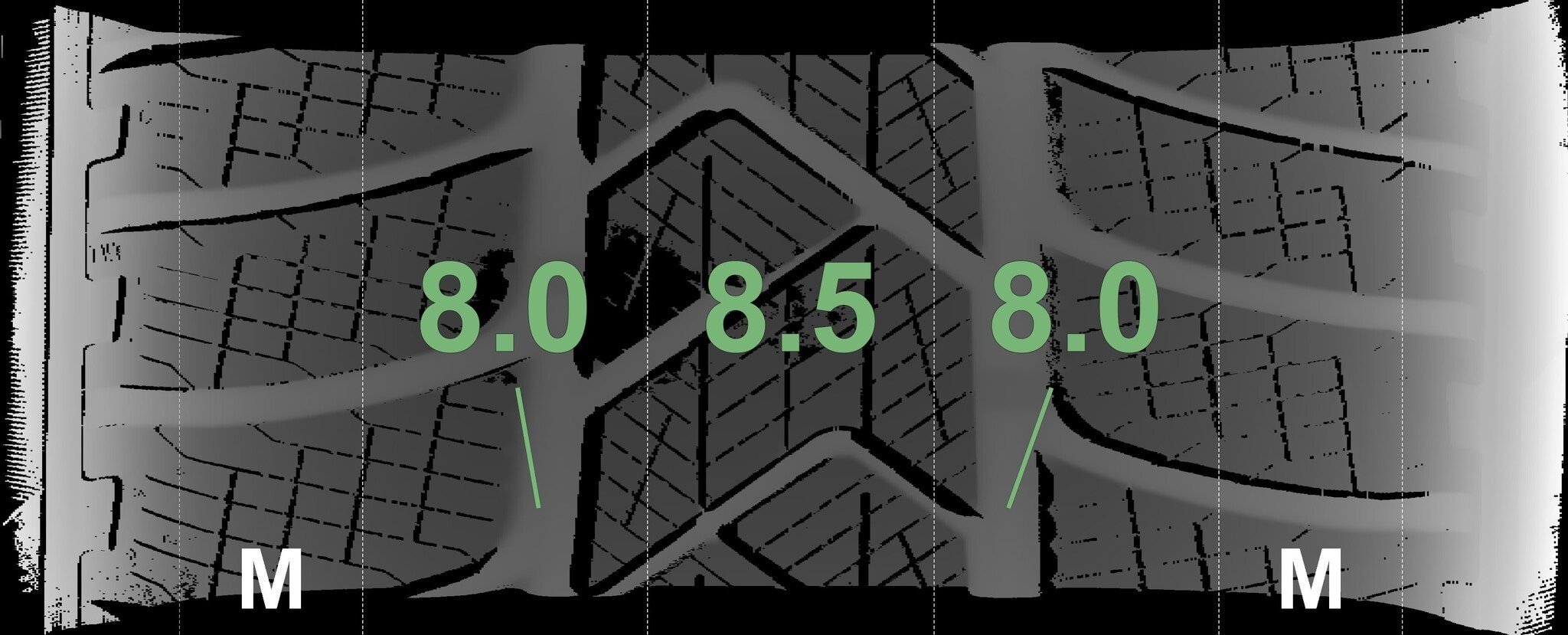De gemeten profieldieptes en de details van de velgen zijn hierboven weergegeven.