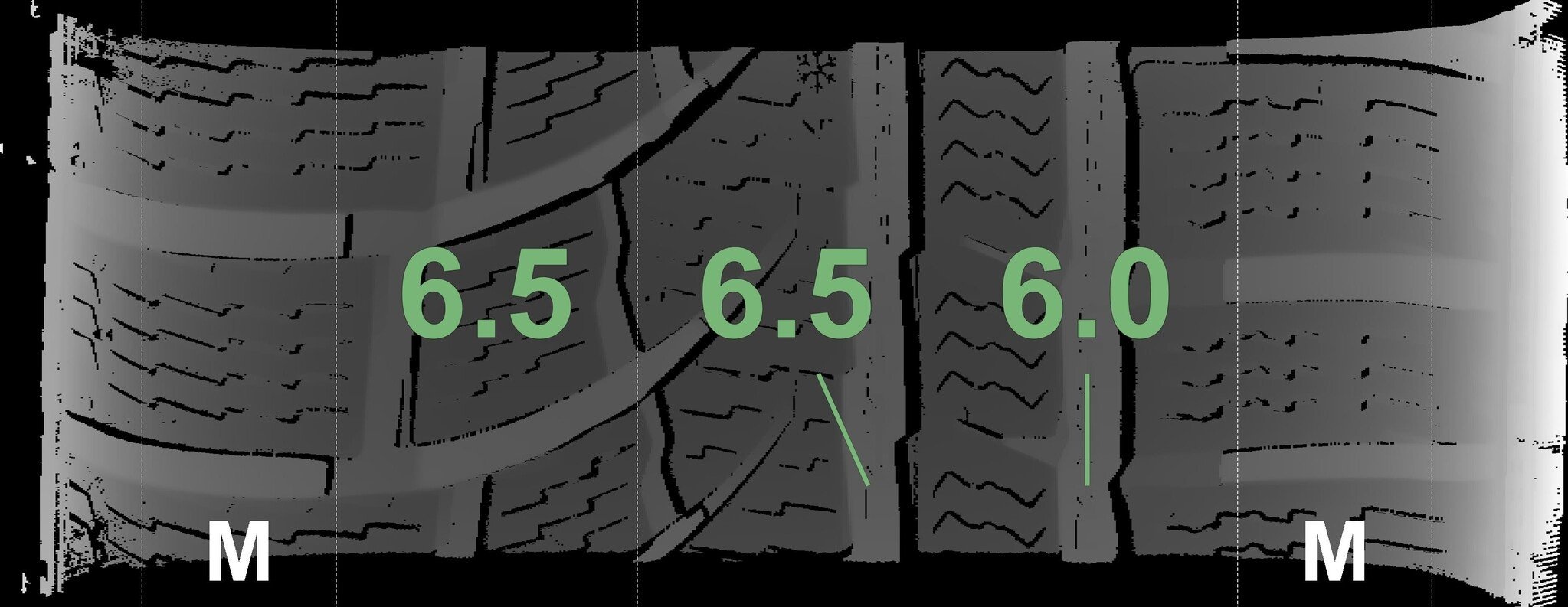 De gemeten profieldieptes en de details van de velgen zijn hierboven weergegeven.