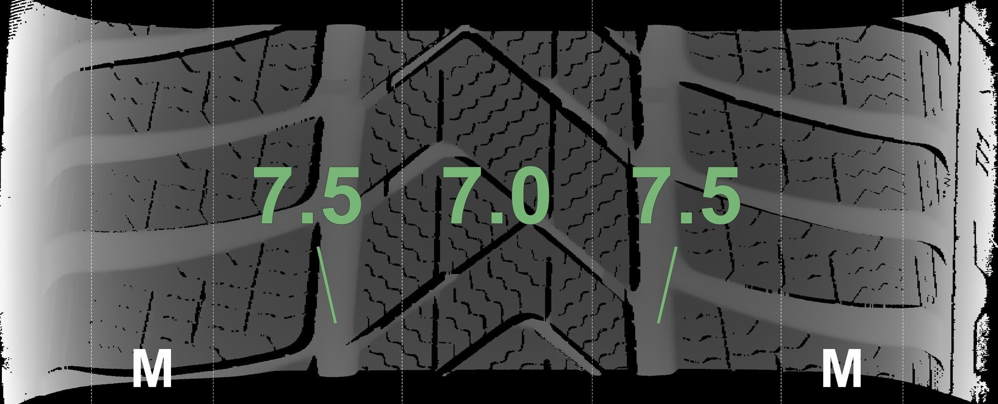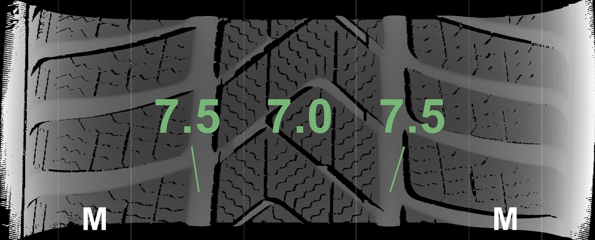 De gemeten profieldieptes en de details van de velgen zijn hierboven weergegeven.