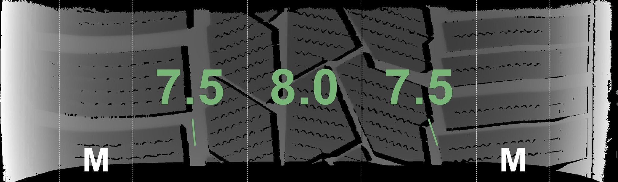 | Conditie | Profieldiepte | DOT | Rechts Achter | Gebruikt | 7.7 mm | 2423 |