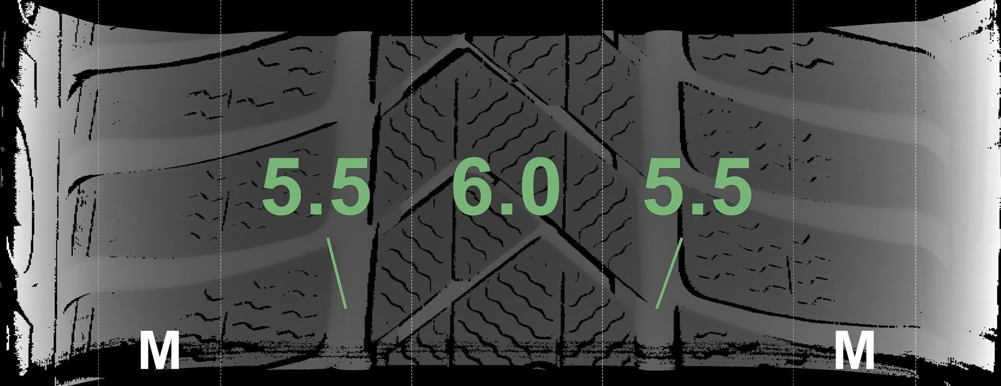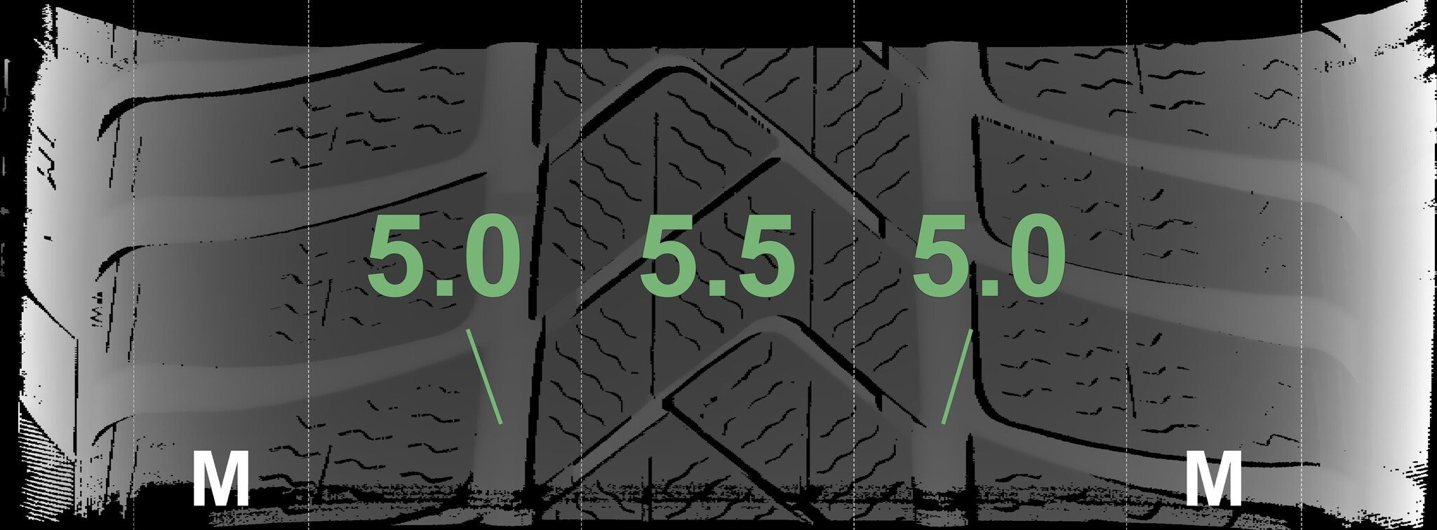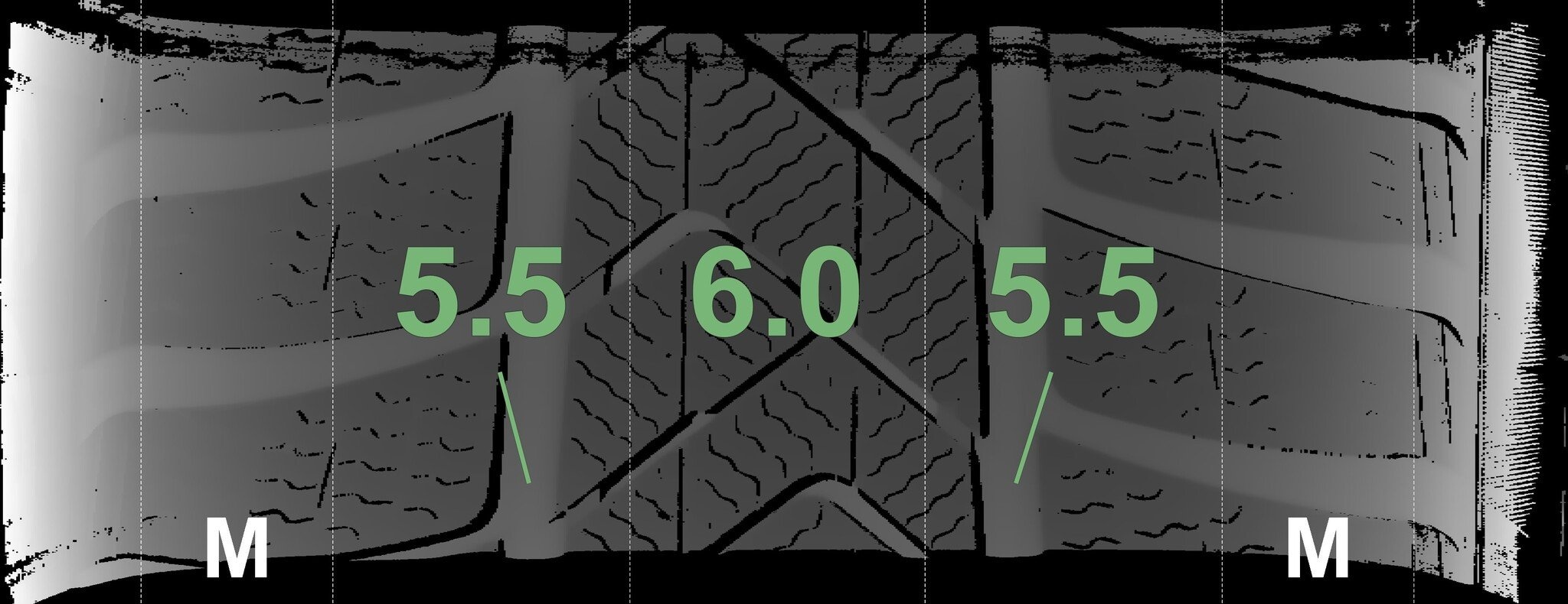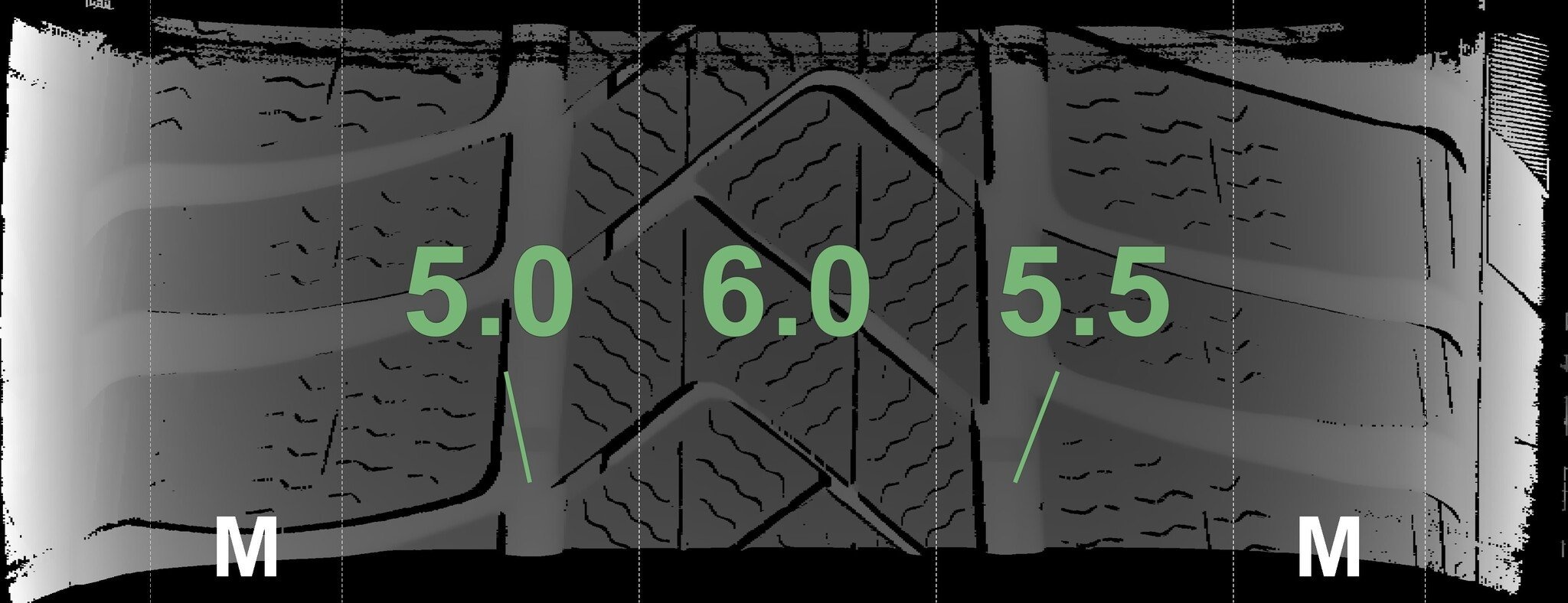 De gemeten profieldieptes en de details van de velgen zijn hierboven weergegeven.