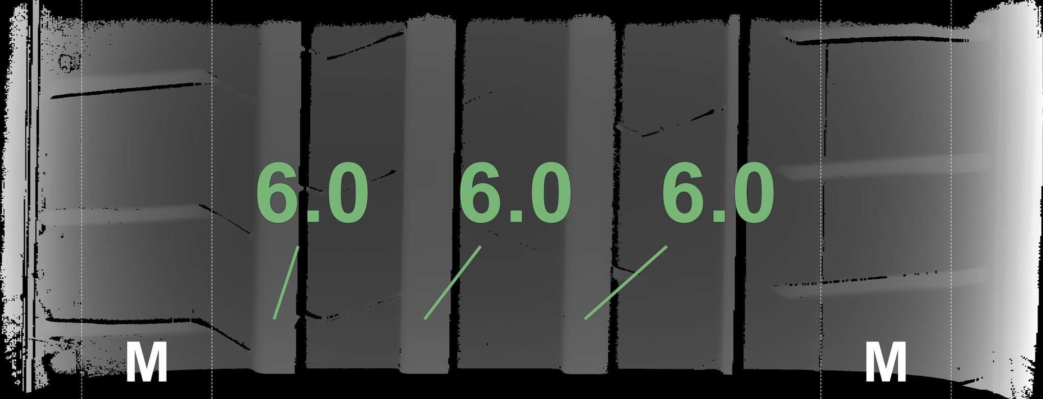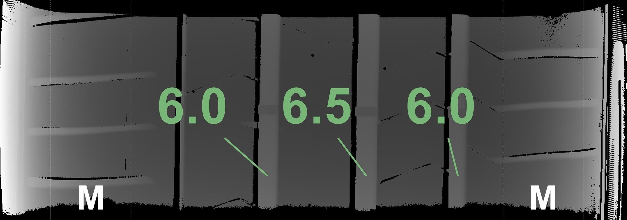 De gemeten profieldieptes en de details van de velgen zijn hierboven weergegeven.
