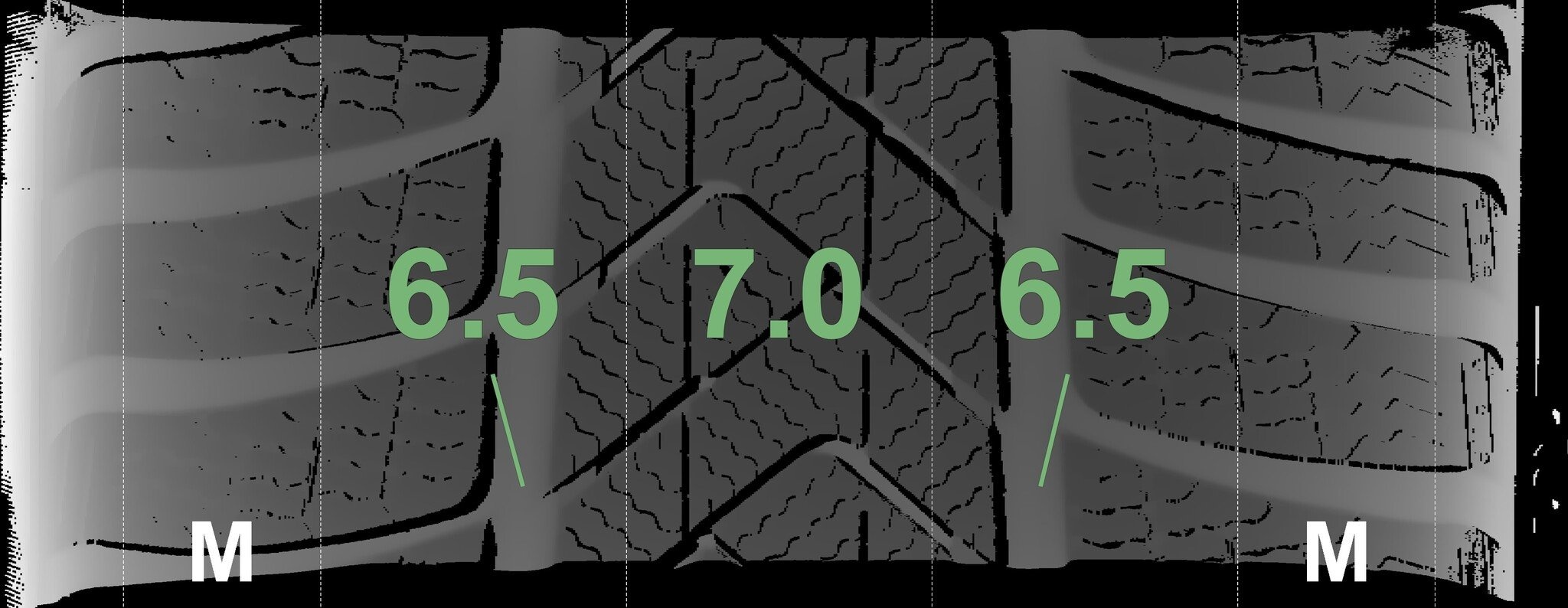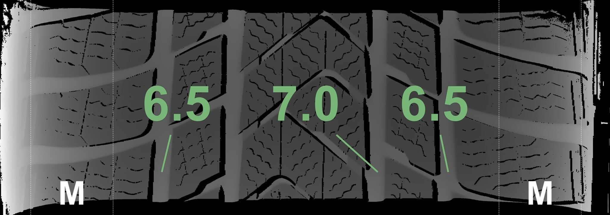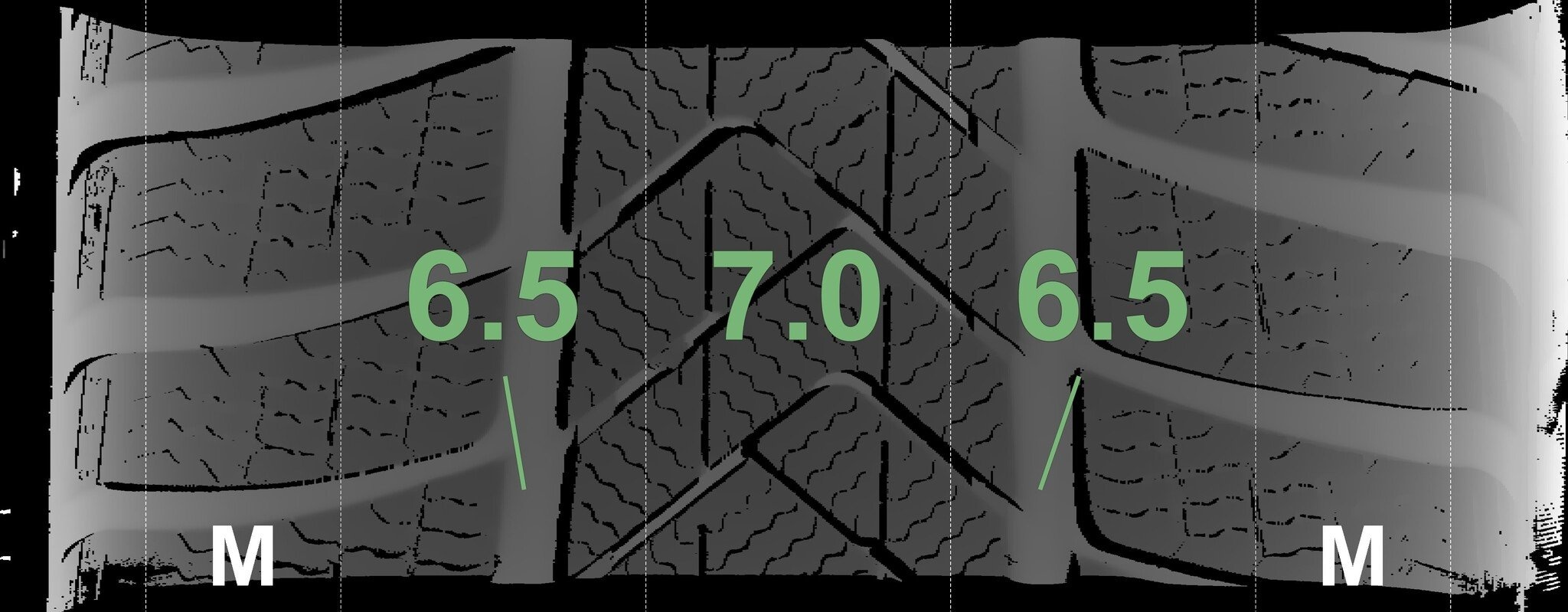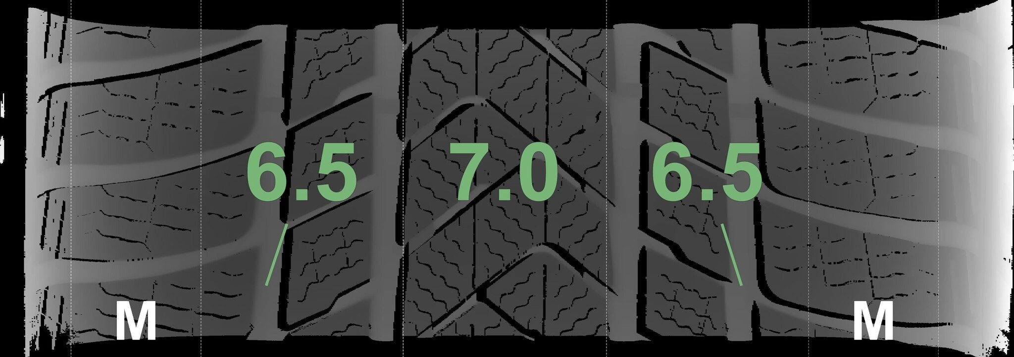 De gemeten profieldieptes en de details van de velgen zijn hierboven weergegeven.