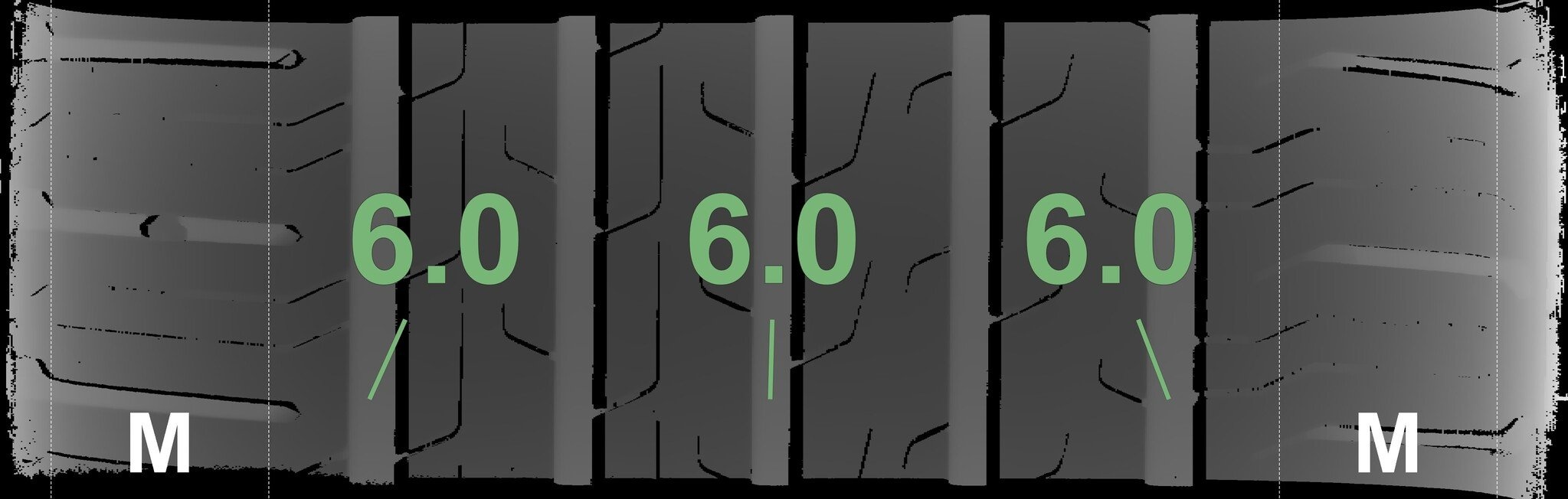 | Conditie | Profieldiepte | DOT | Rechts Achter | Demo nopjes nog zichtbaar | 6.0 mm | 3324 |