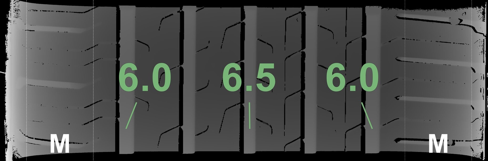 De gemeten profieldieptes en de details van de velgen zijn hierboven weergegeven.