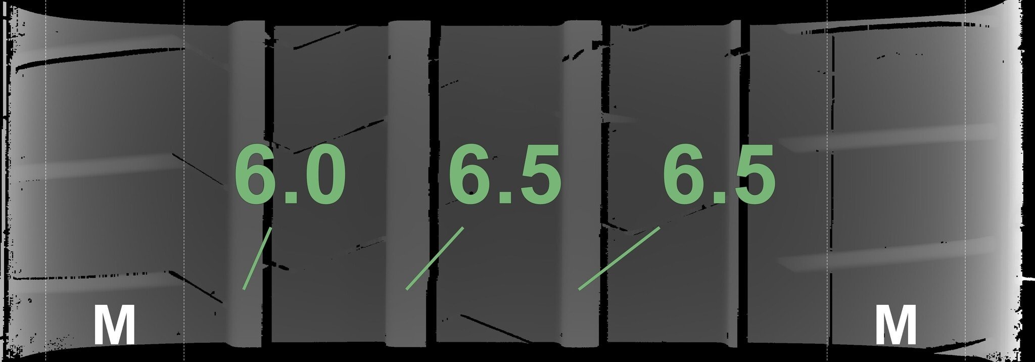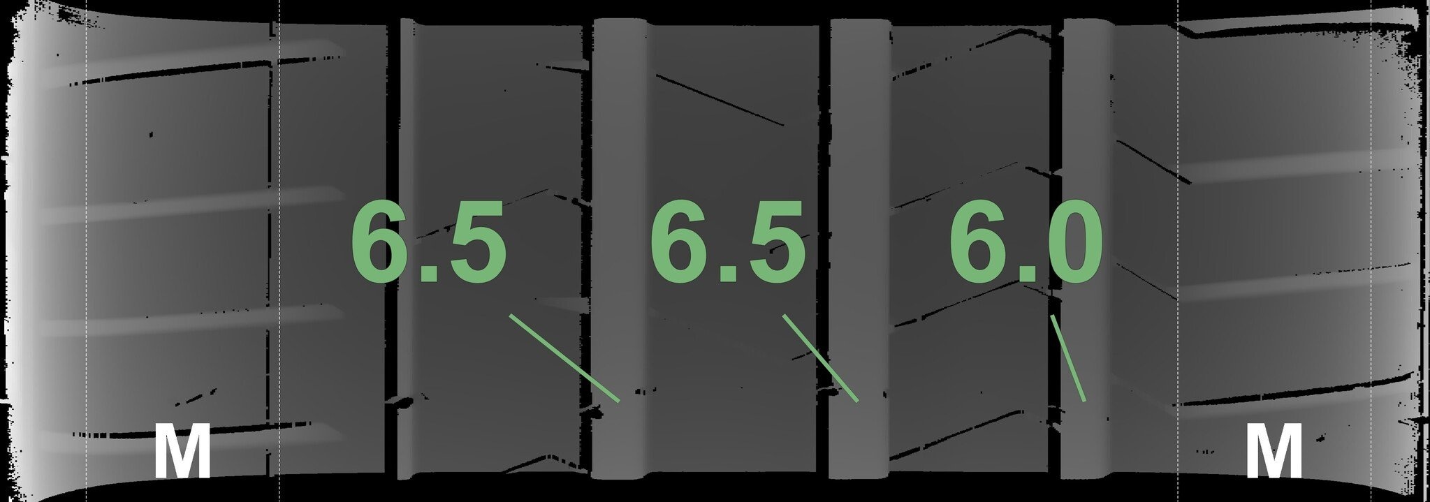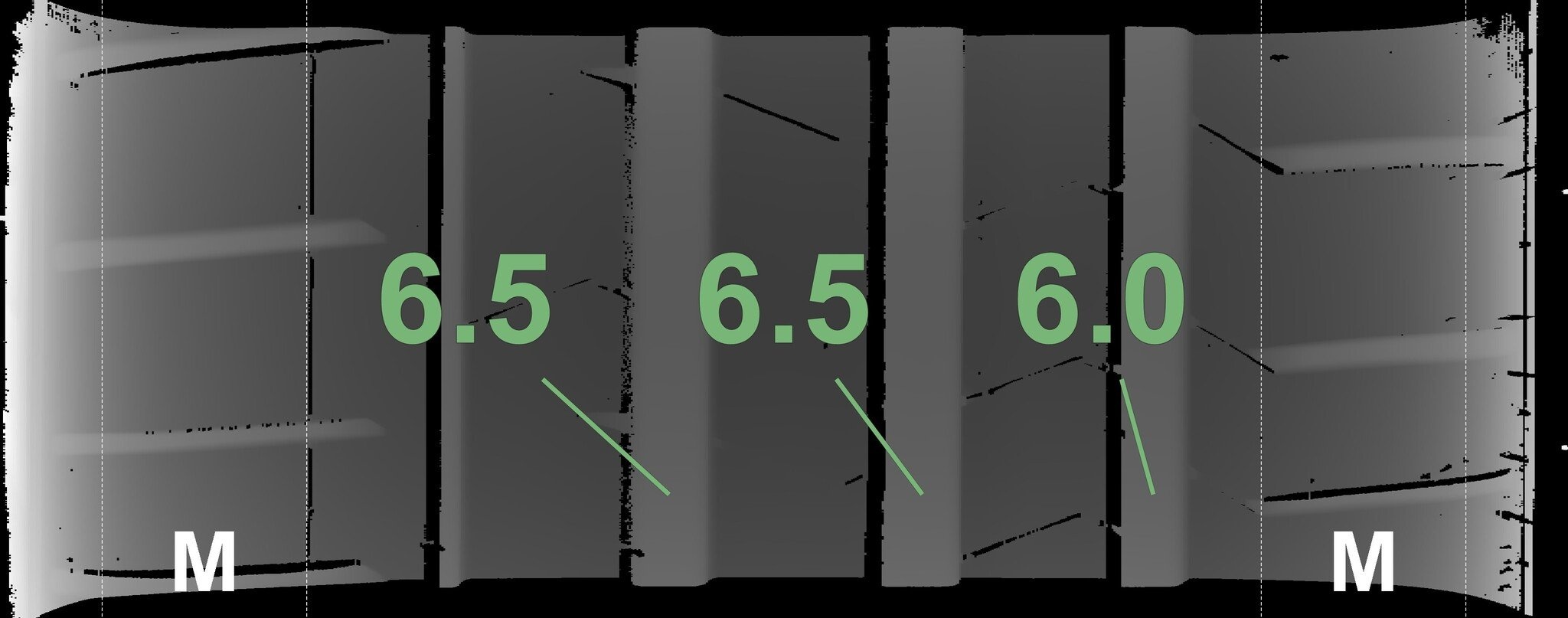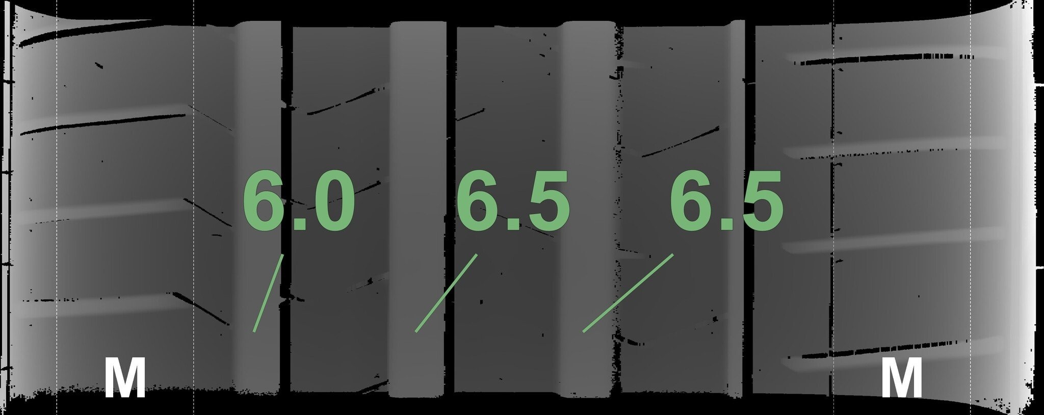 De gemeten profieldieptes en de details van de velgen zijn hierboven weergegeven.