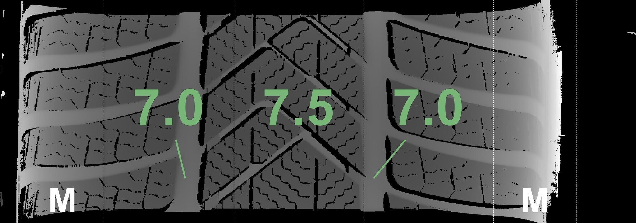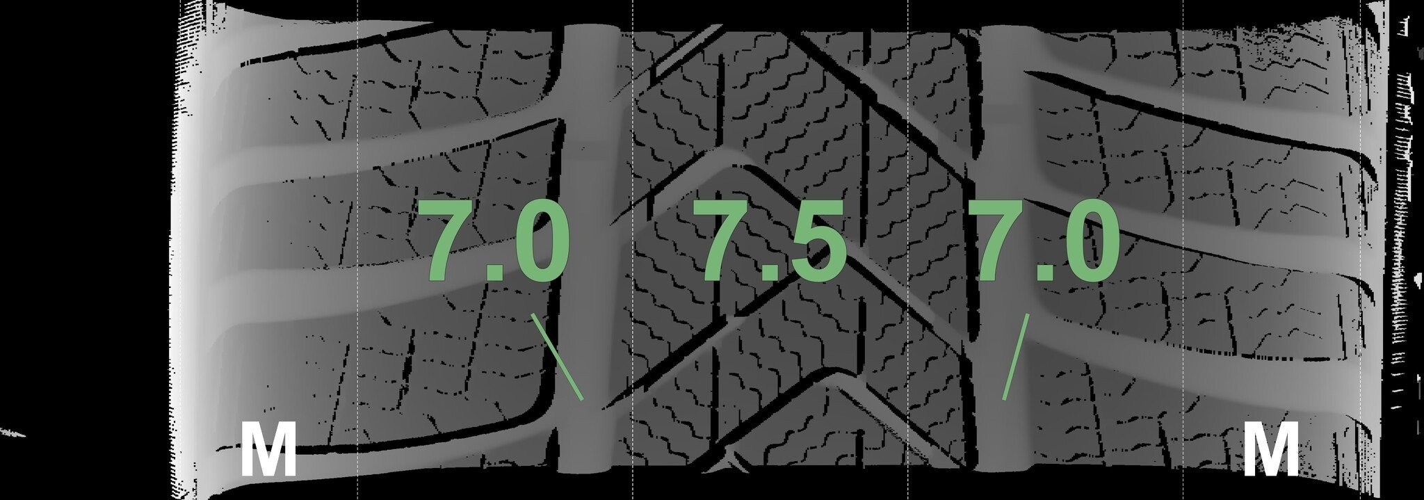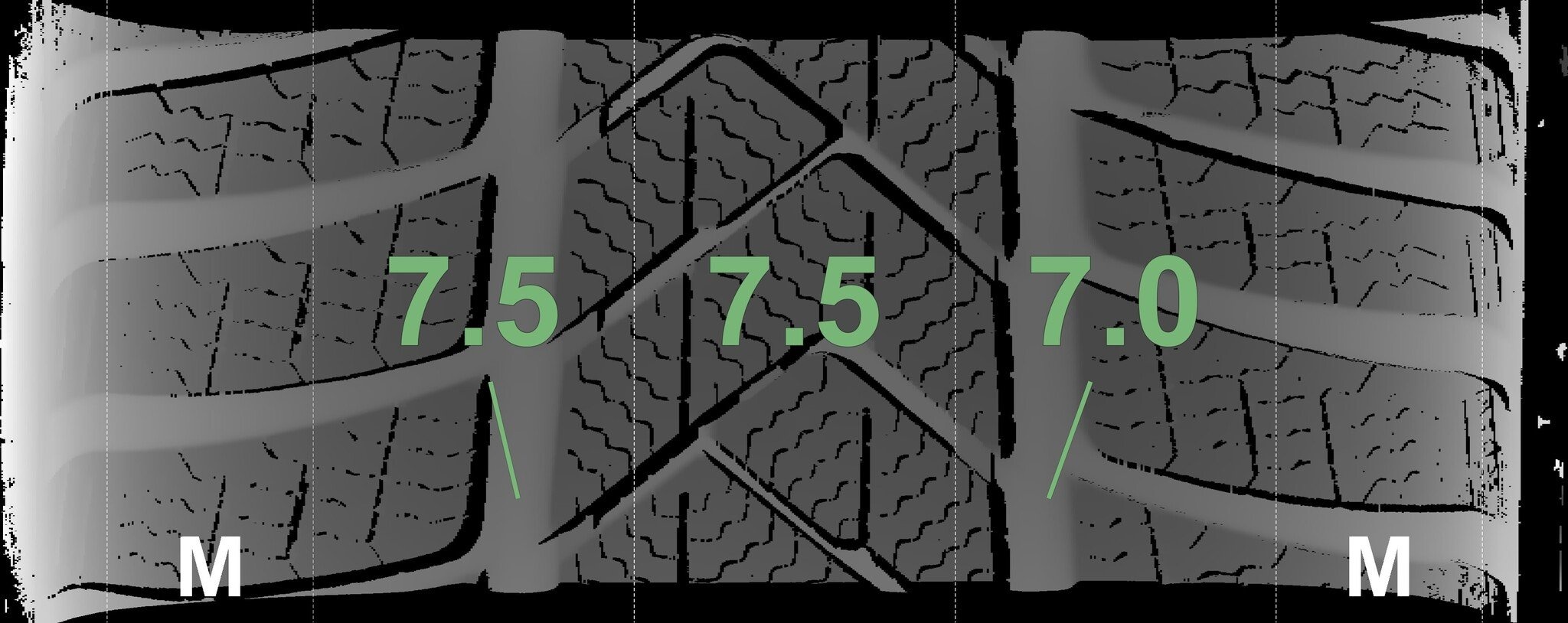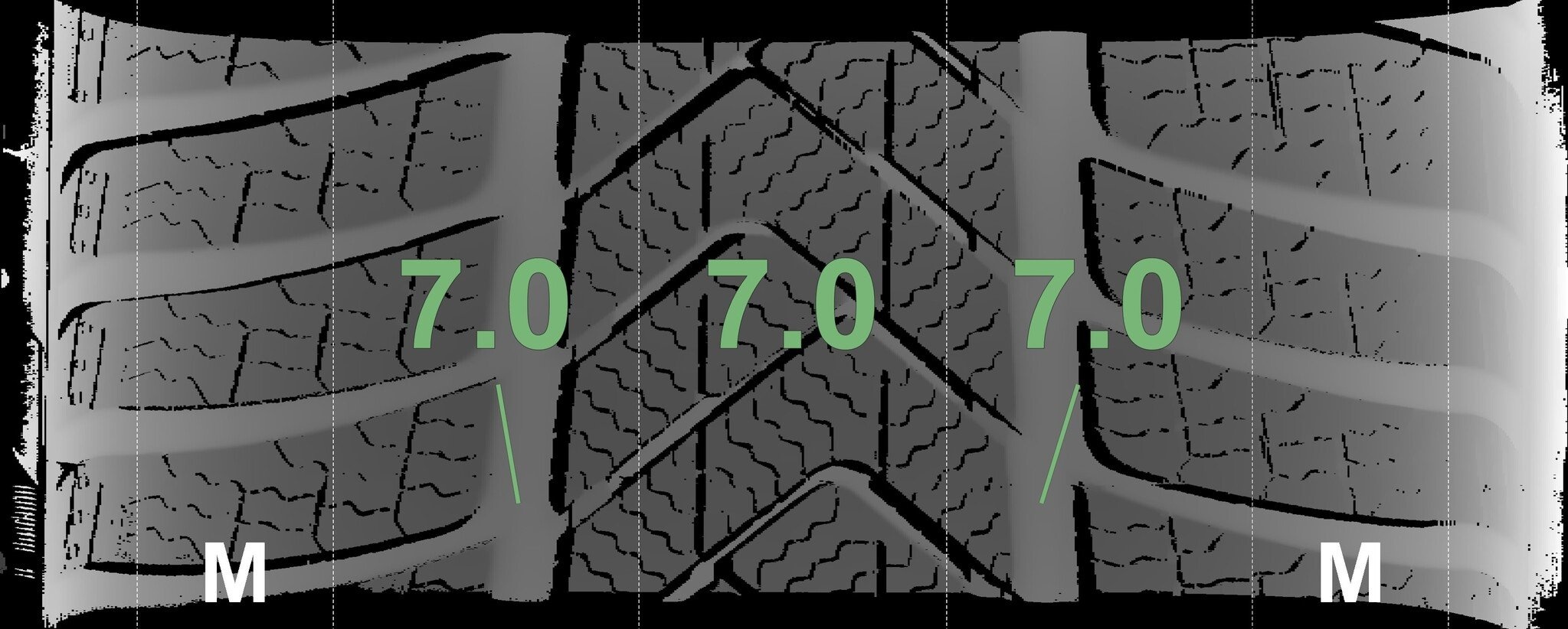 De gemeten profieldieptes en de details van de velgen zijn hierboven weergegeven.