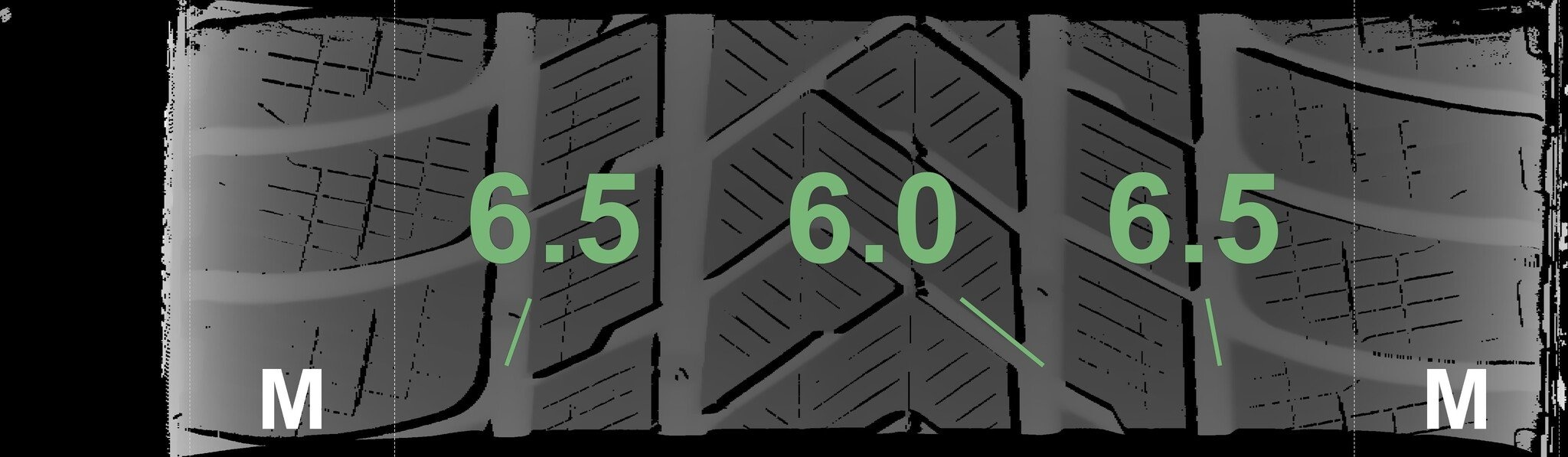 De gemeten profieldieptes en de details van de velgen zijn hierboven weergegeven.