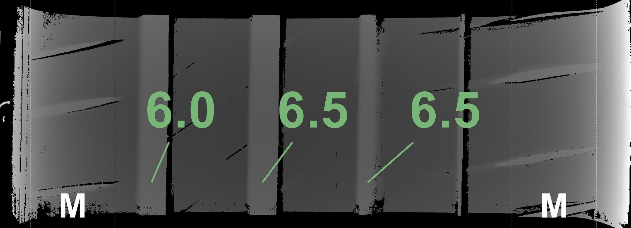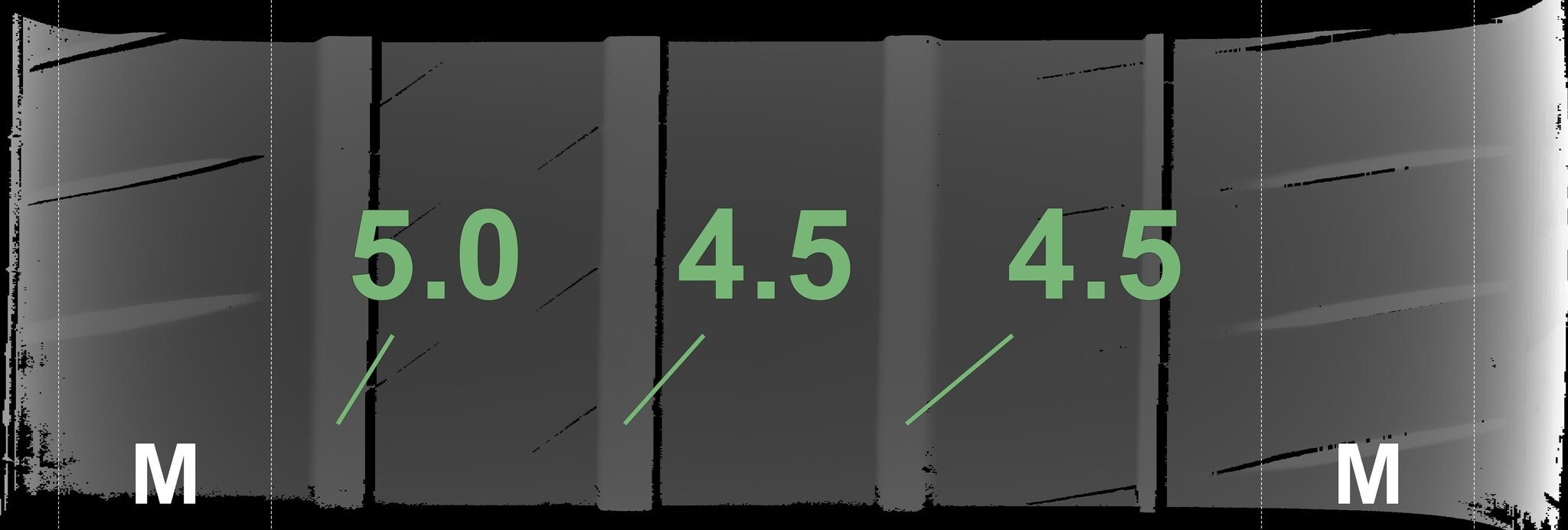 De gemeten profieldieptes en de details van de velgen zijn hierboven weergegeven.