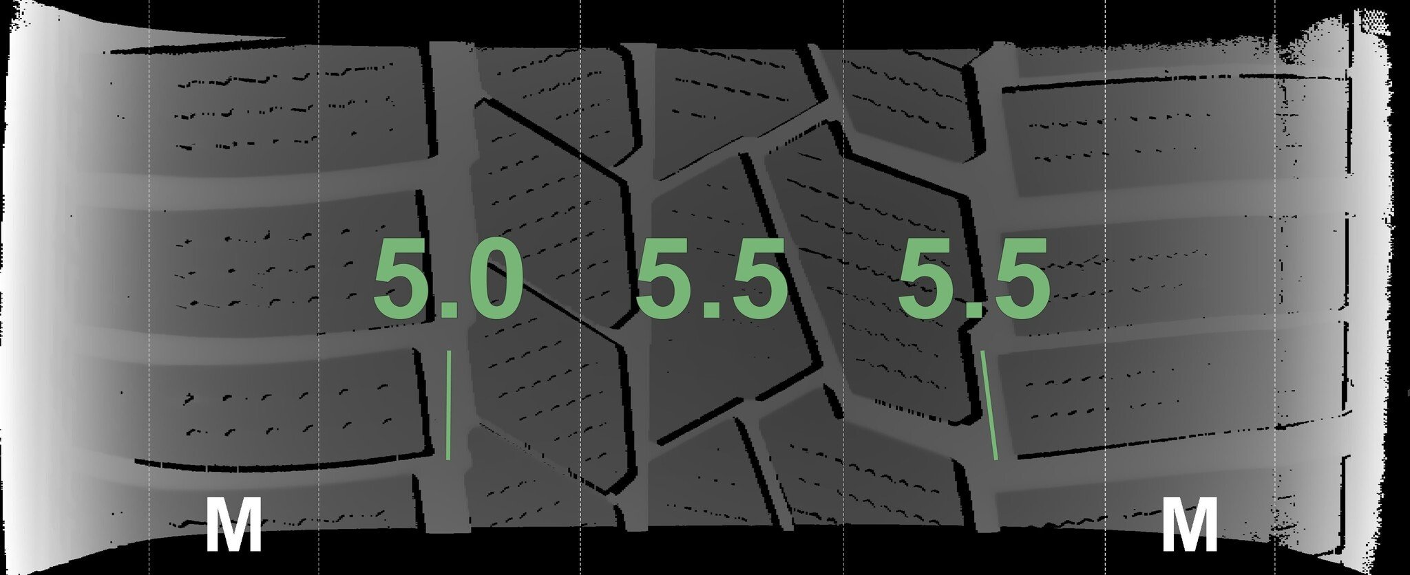 De gemeten profieldieptes en de details van de velgen zijn hierboven weergegeven.