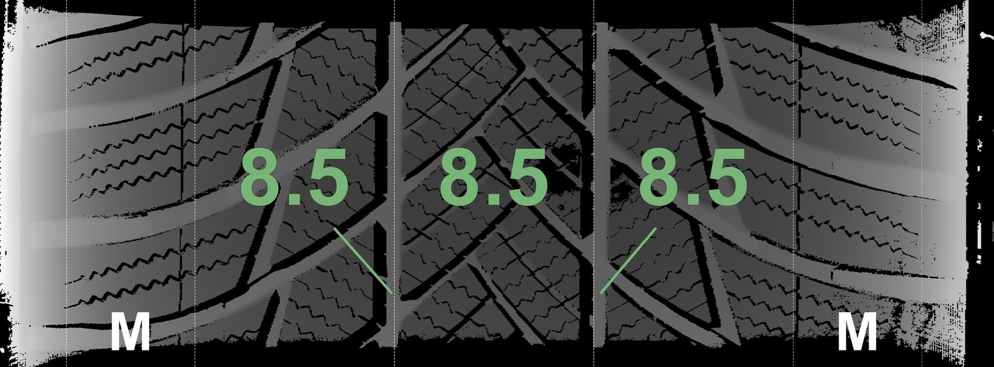 | Conditie | Profieldiepte | DOT | Links Achter | Demo nopjes nog zichtbaar | 8.5 mm | 4319 |