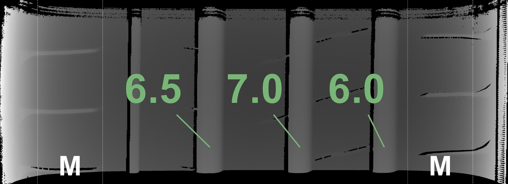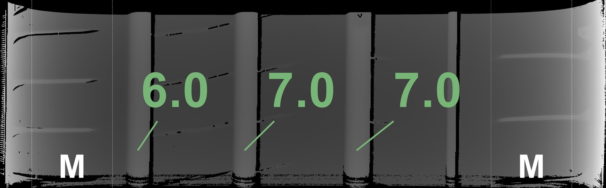De gemeten profieldieptes en de details van de velgen zijn hierboven weergegeven.
