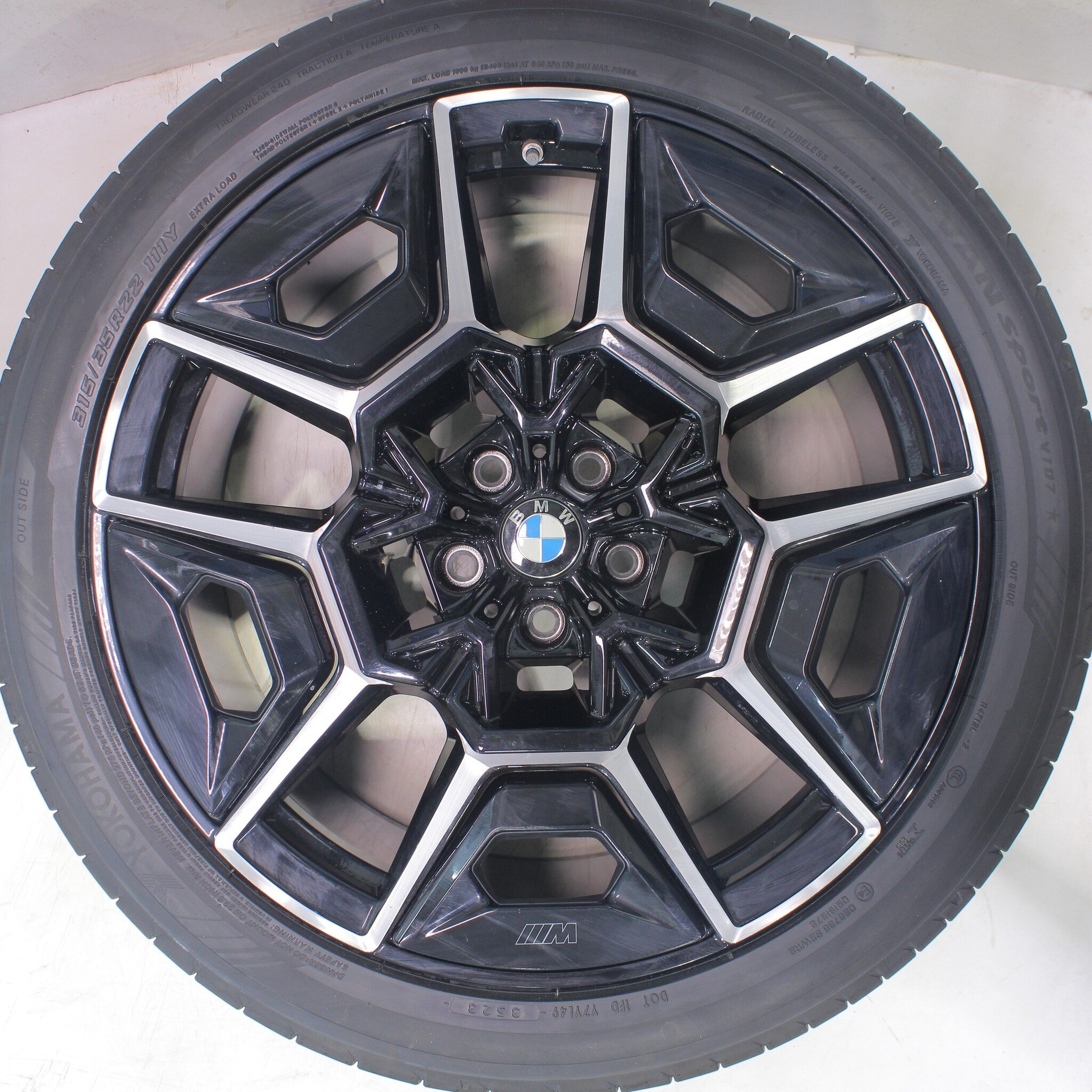 Originele wielset van BMW, styling 922M, 22 inch velgen met Yokohama Advansport V107 Zomerbanden. Deze velgen zijn originele velgen van het merk BMW en geschikt voor: BMW XM G09.