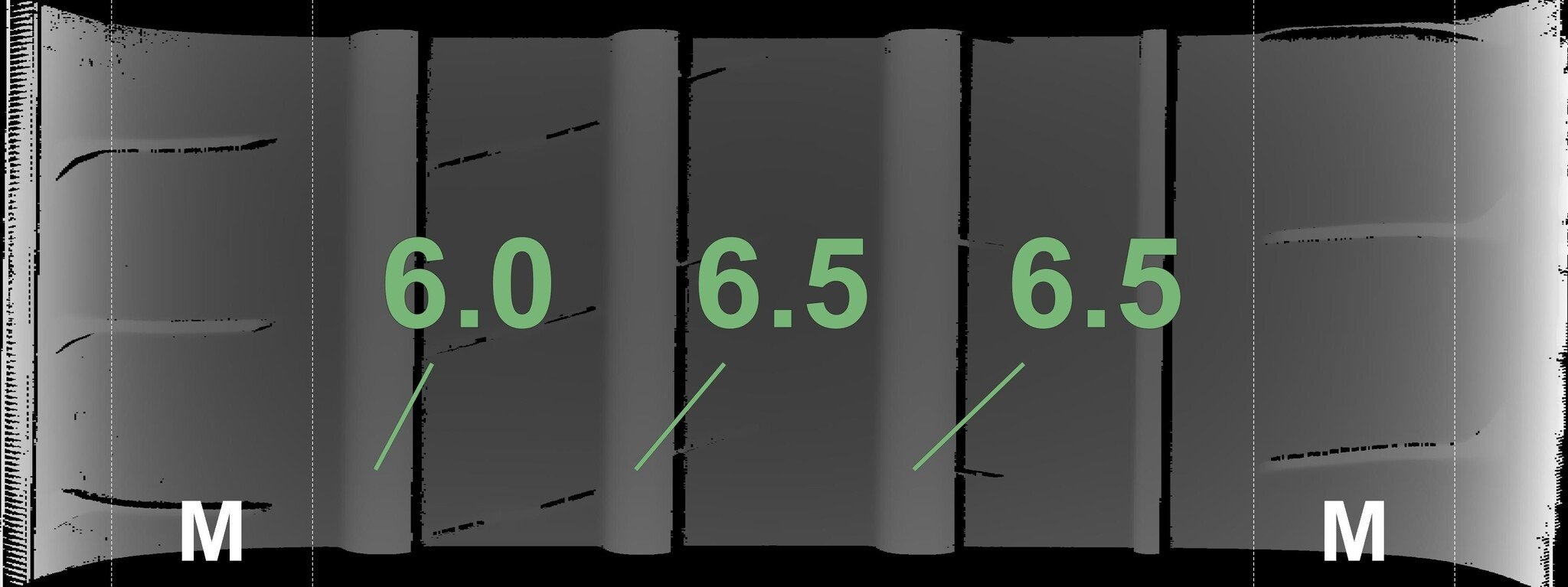 De gemeten profieldieptes en de details van de velgen zijn hierboven weergegeven.