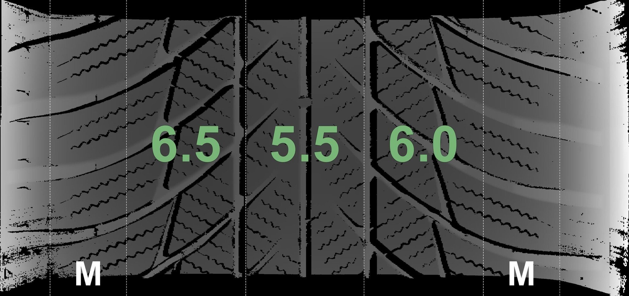 De gemeten profieldieptes en de details van de velgen zijn hierboven weergegeven.
