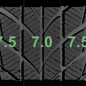 De gemeten profieldieptes en de details van de velgen zijn hierboven weergegeven.