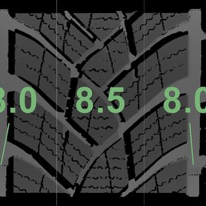 De gemeten profieldieptes en de details van de velgen zijn hierboven weergegeven.