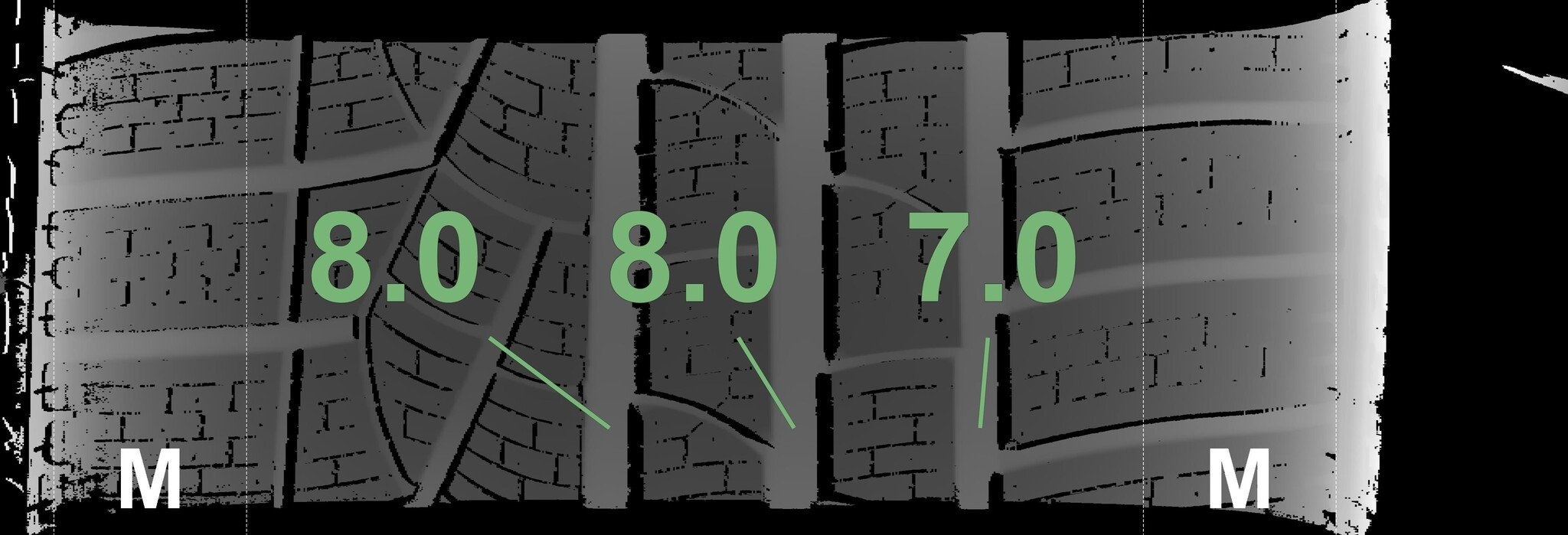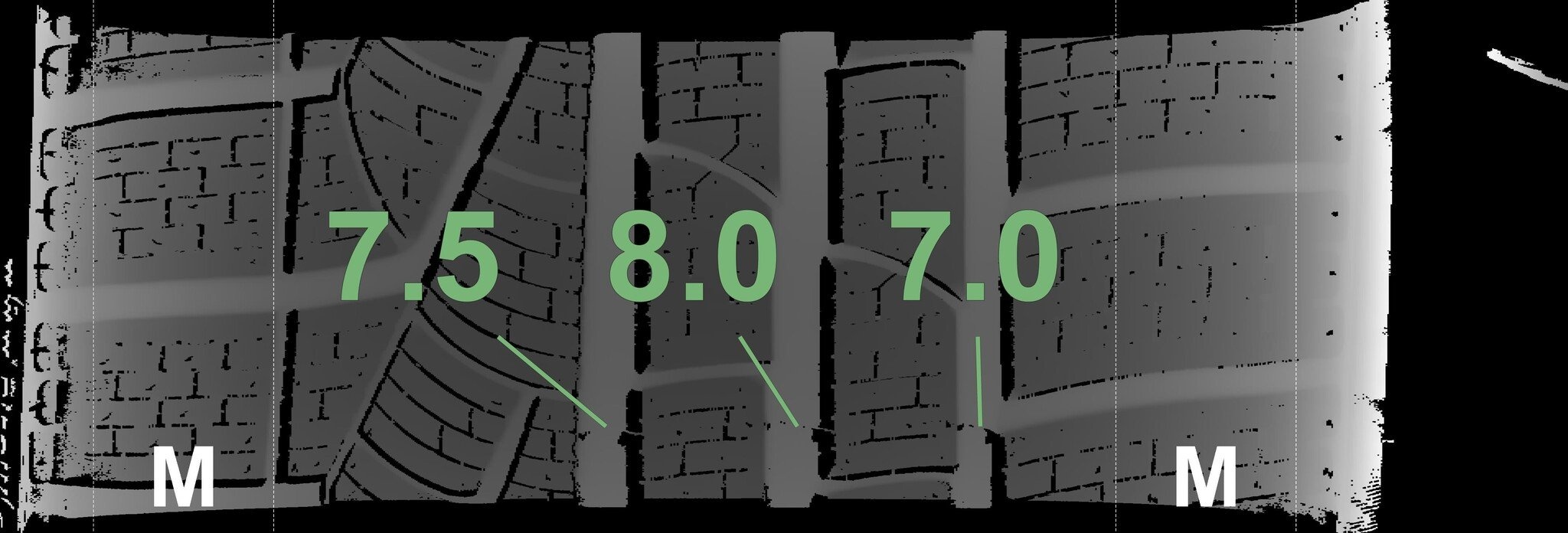 De gemeten profieldieptes en de details van de velgen zijn hierboven weergegeven.