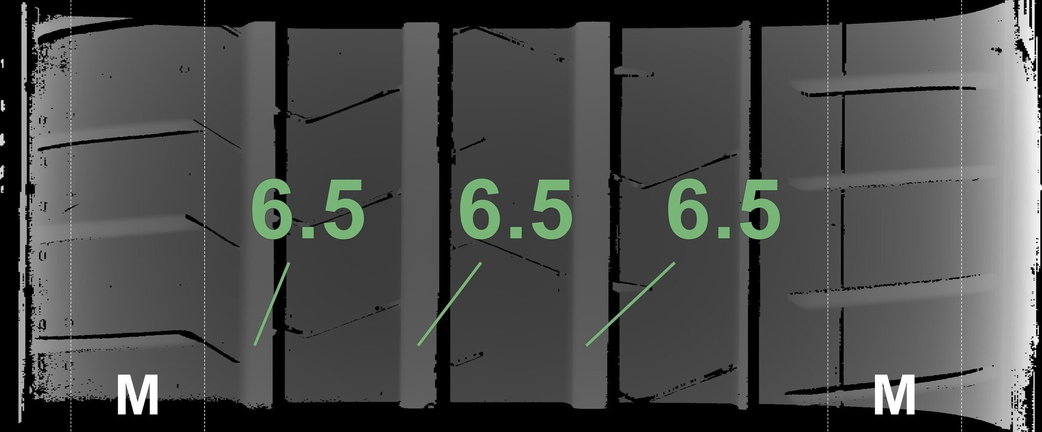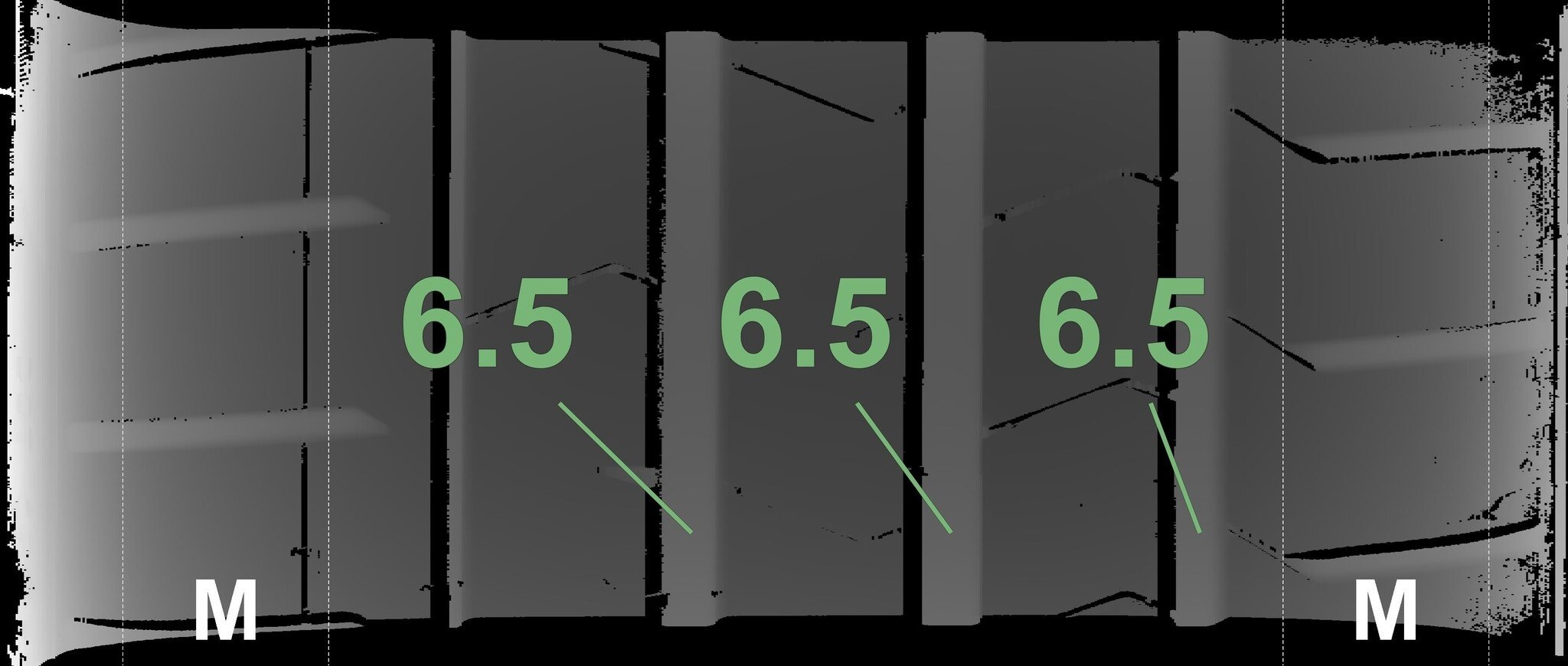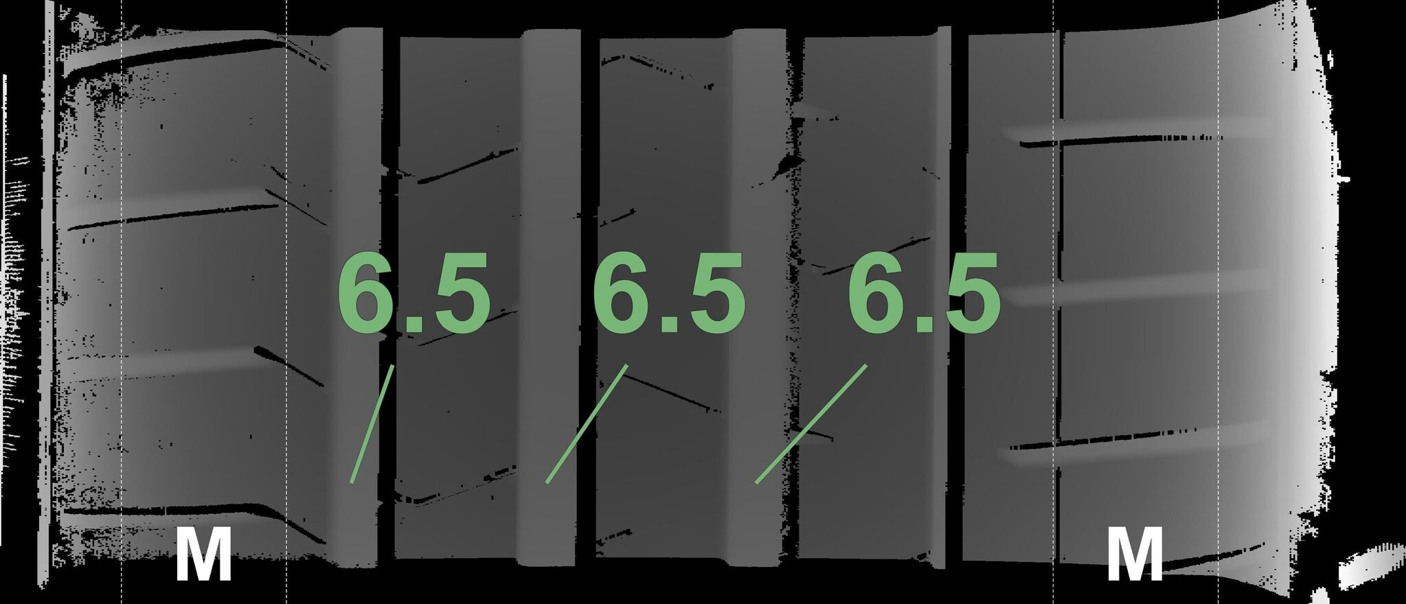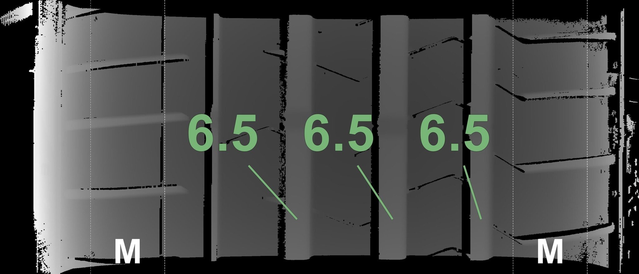 De gemeten profieldieptes en de details van de velgen zijn hierboven weergegeven.