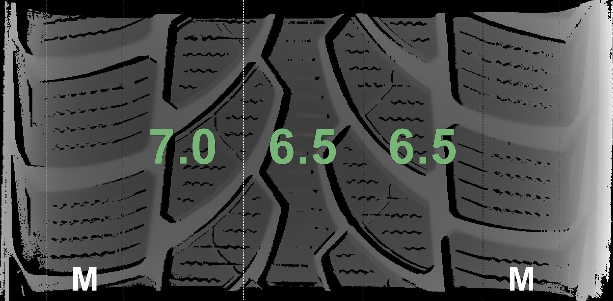 De gemeten profieldieptes en de details van de velgen zijn hierboven weergegeven.
