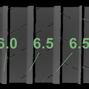 De gemeten profieldieptes en de details van de velgen zijn hierboven weergegeven.
