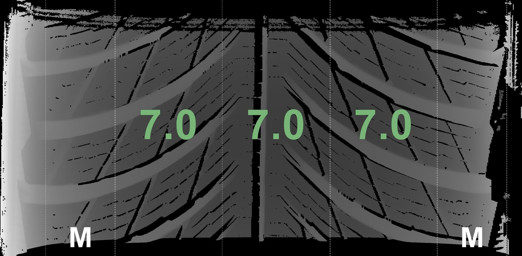 | Conditie | Profieldiepte | DOT | Rechts Achter | Demo nopjes nog zichtbaar | 7.0 mm | 2419 |