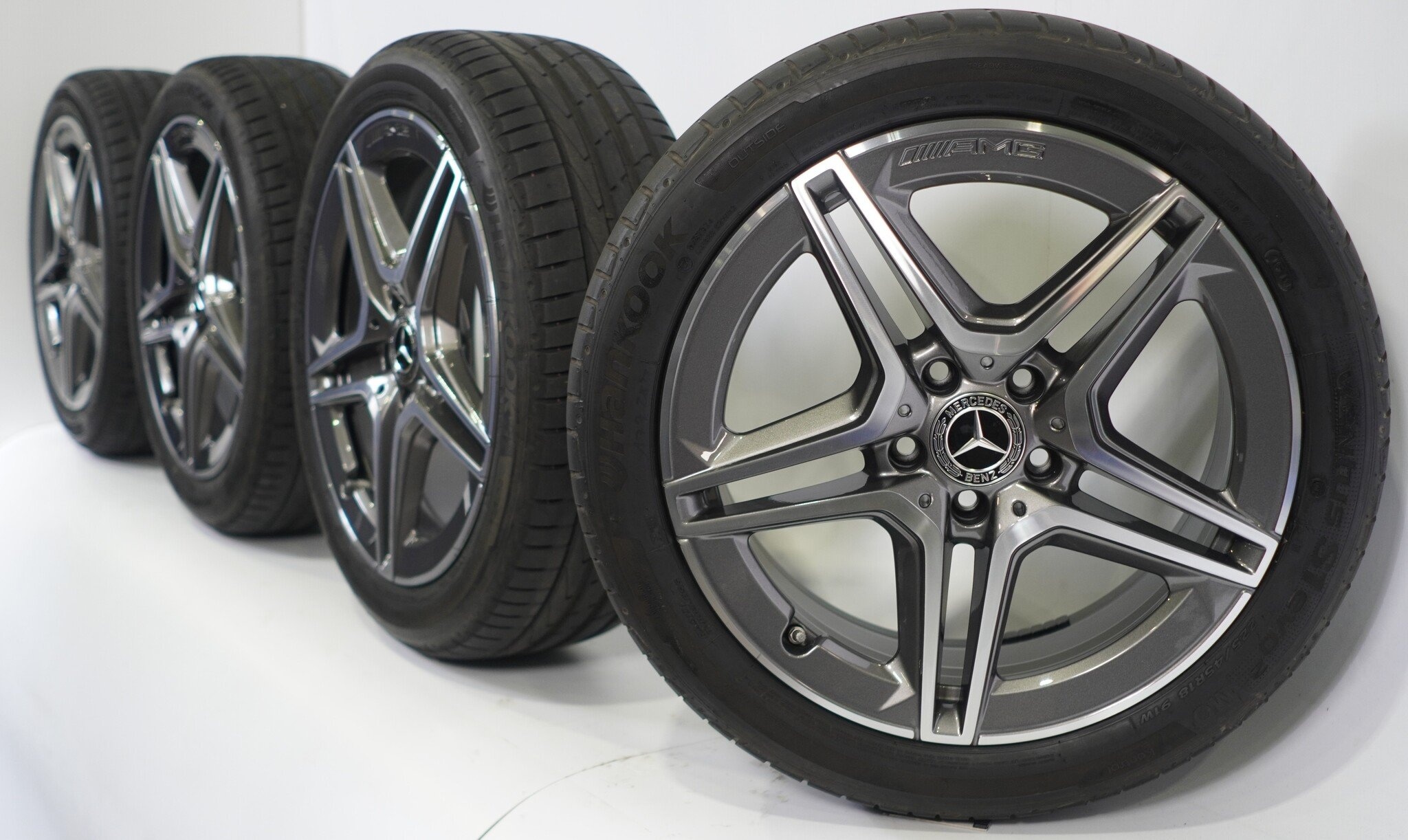 Originele wielset van Mercedes, styling 18 inch velgen met Hankook Ventus S1 evo 2 Zomerbanden. Deze velgen zijn originele velgen van het merk Mercedes en geschikt voor: Mercedes A B CLA Klasse W177 C118 W247.