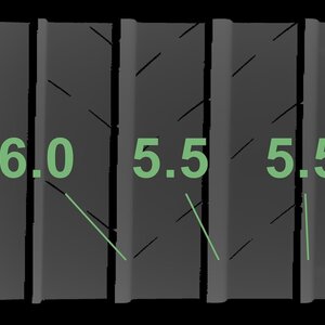De gemeten profieldieptes en de details van de velgen zijn hierboven weergegeven.
