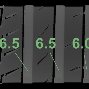 De gemeten profieldieptes en de details van de velgen zijn hierboven weergegeven.