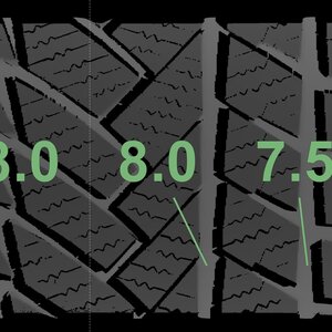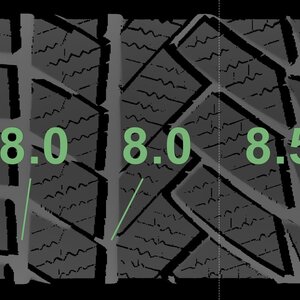 De gemeten profieldieptes en de details van de velgen zijn hierboven weergegeven.