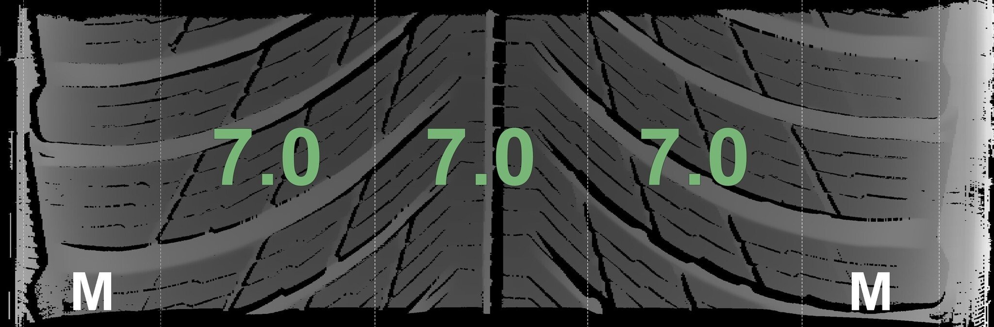 De gemeten profieldieptes en de details van de velgen zijn hierboven weergegeven.
