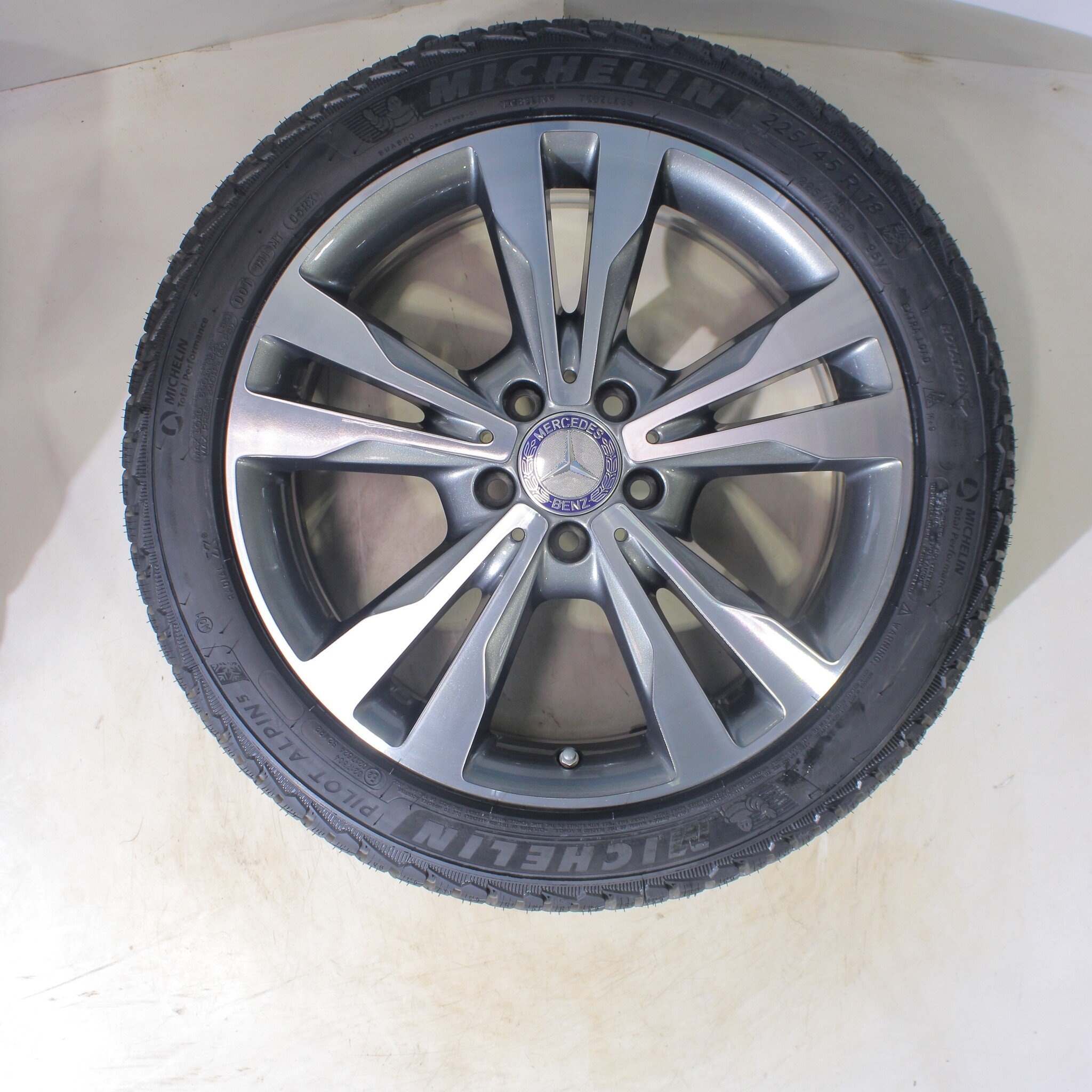 Originele wielset van Mercedes, styling 18 inch velgen met Michelin Pilotalpin 5 Winterbanden. Deze velgen zijn originele velgen van het merk Mercedes en geschikt voor: Mercedes C-Klasse W205 S205 C205.