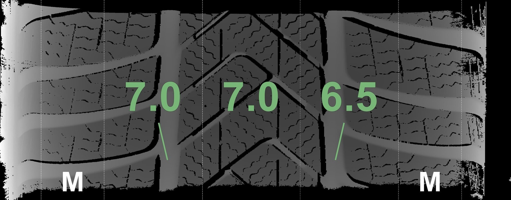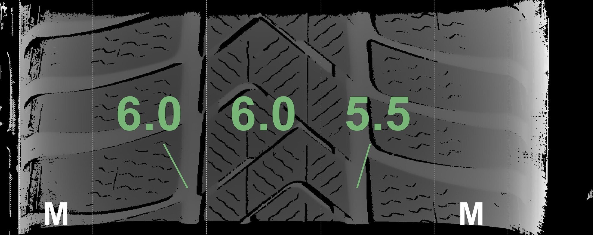 De gemeten profieldieptes en de details van de velgen zijn hierboven weergegeven.