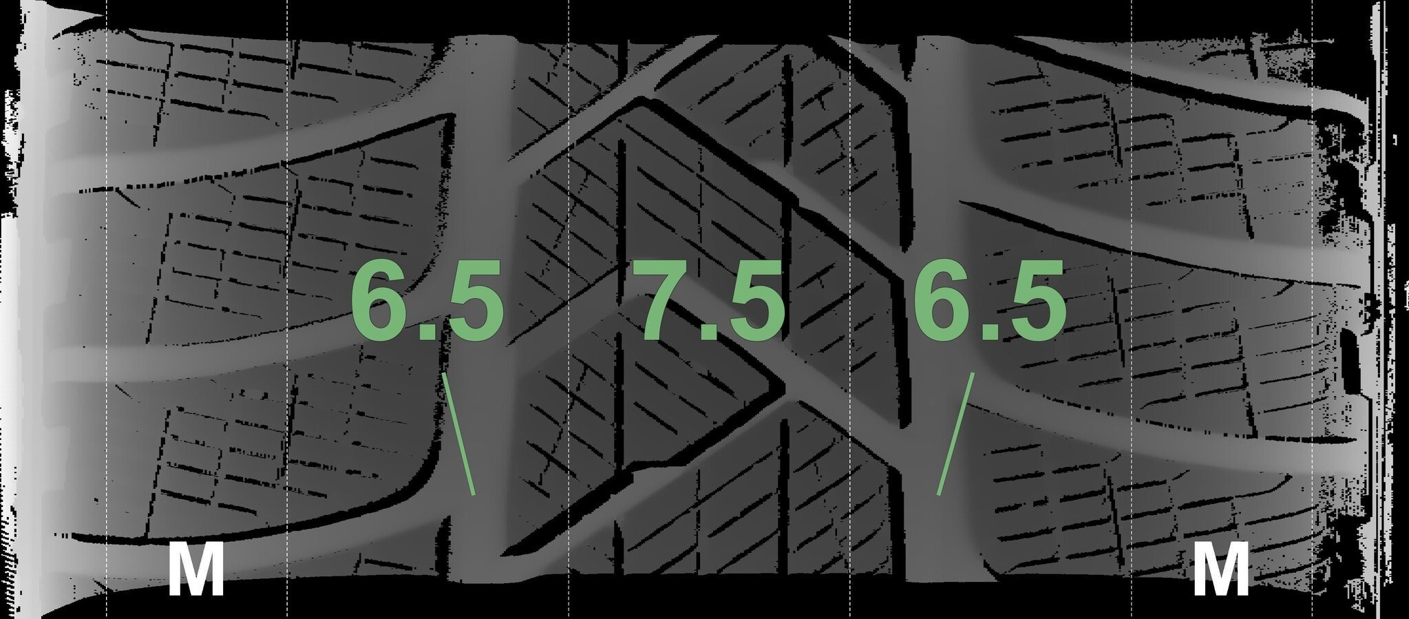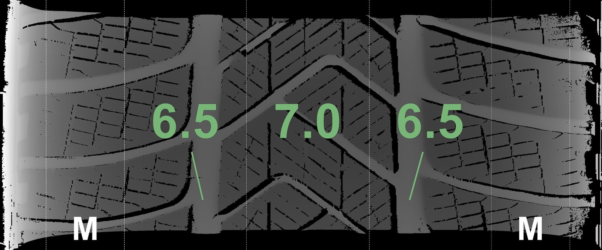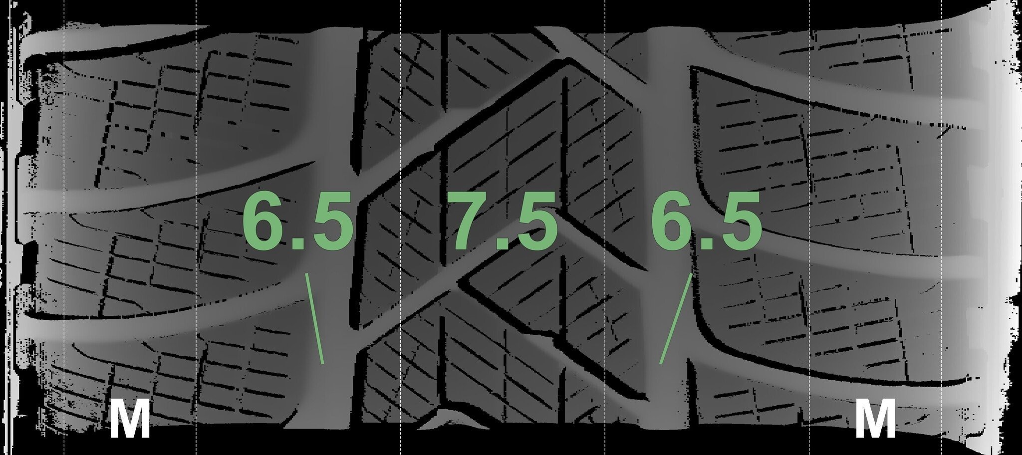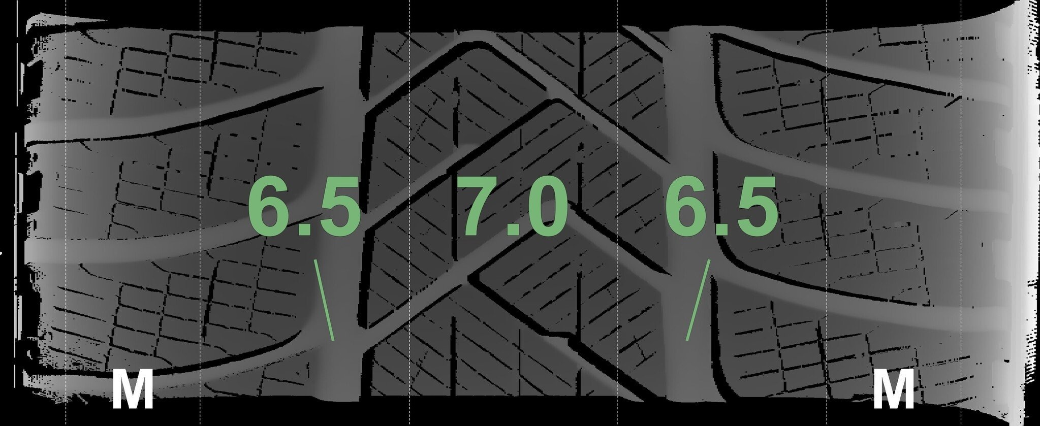 De gemeten profieldieptes en de details van de velgen zijn hierboven weergegeven.