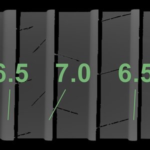 De gemeten profieldieptes en de details van de velgen zijn hierboven weergegeven.