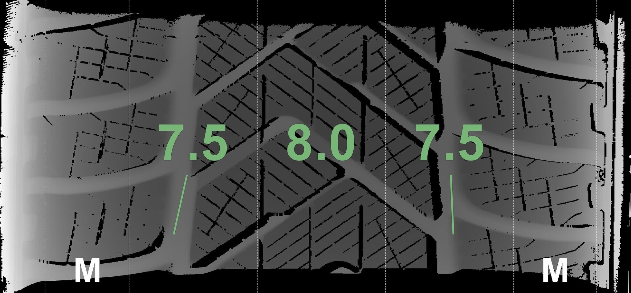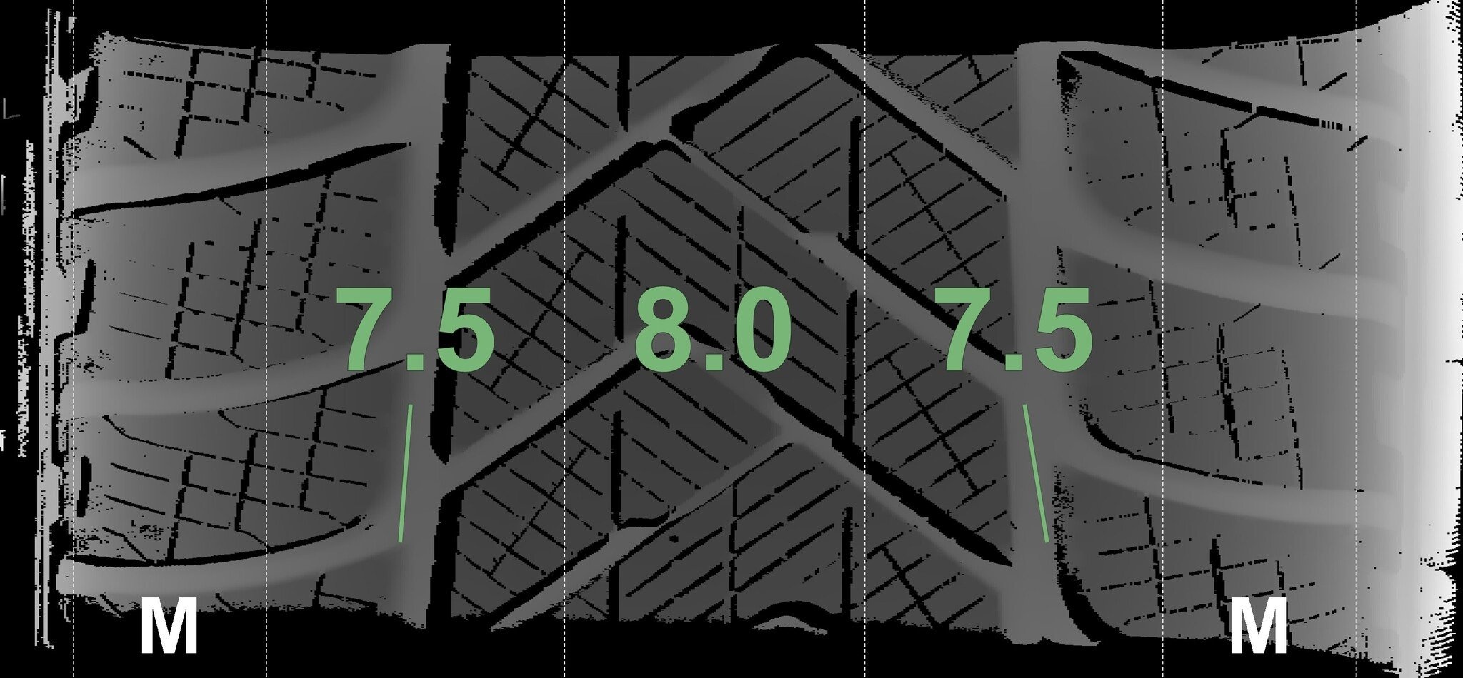 | Conditie | Profieldiepte | DOT | Rechts Voor | Nieuw | 7.5 mm | 4321 |