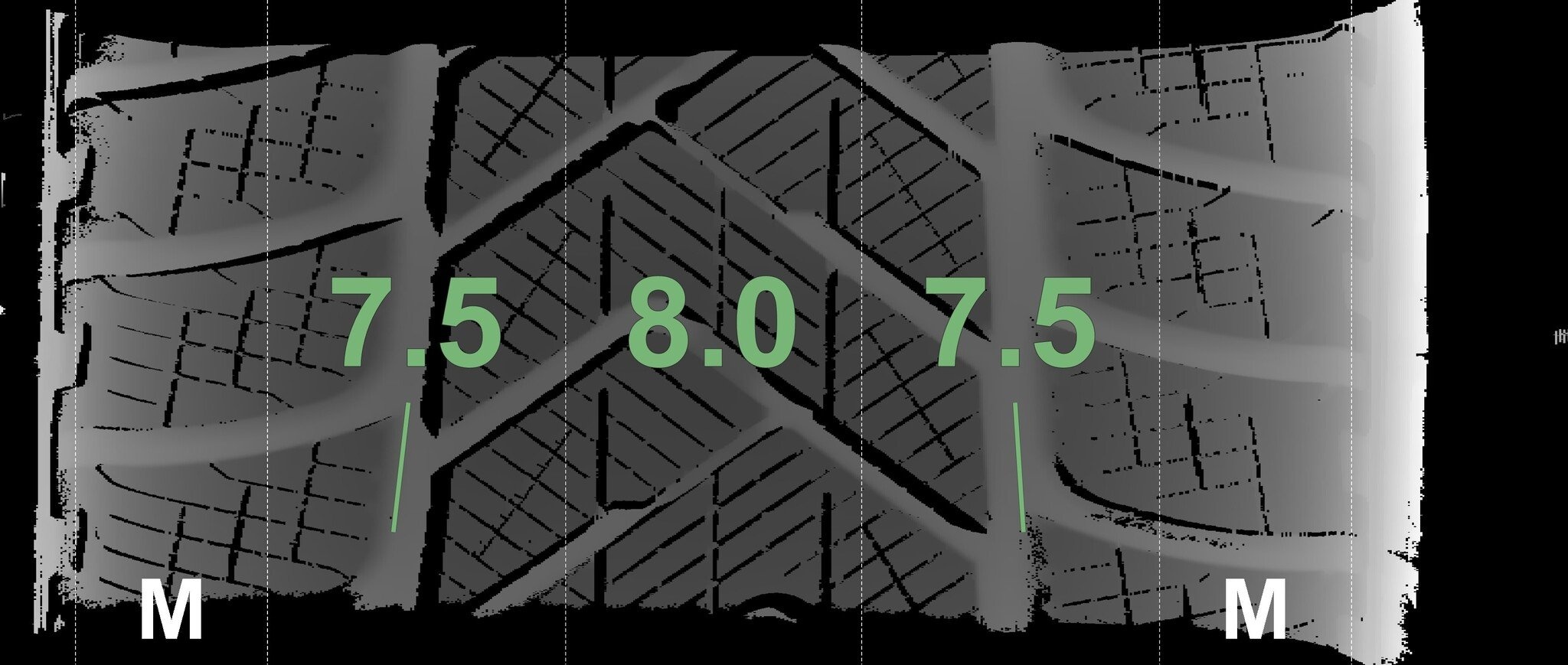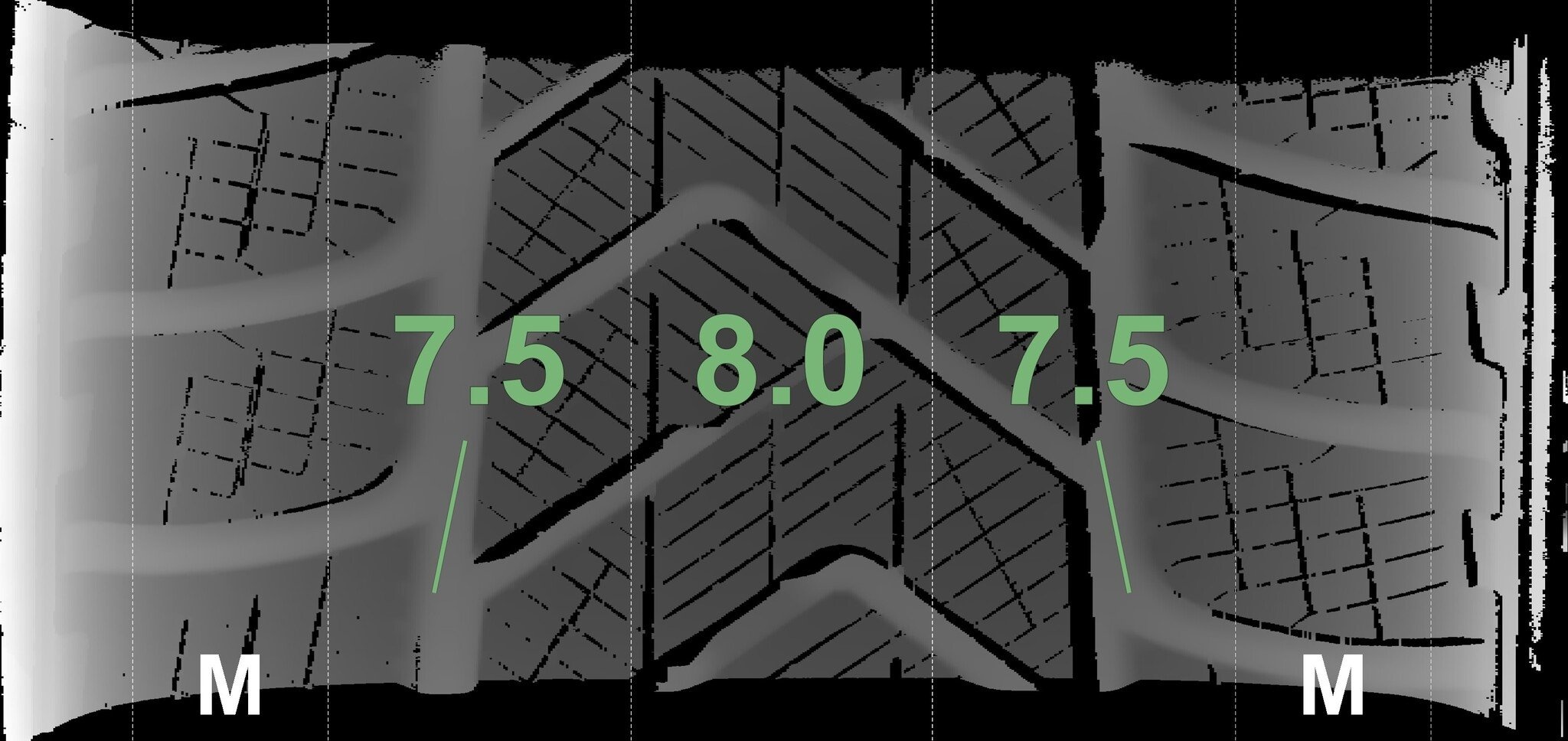 De gemeten profieldieptes en de details van de velgen zijn hierboven weergegeven.