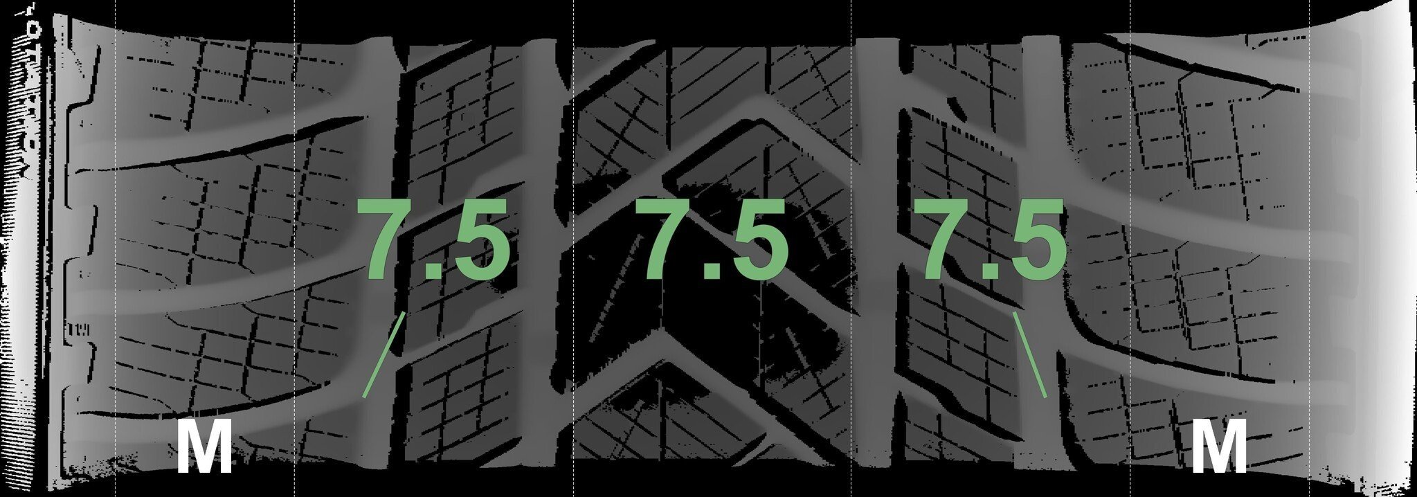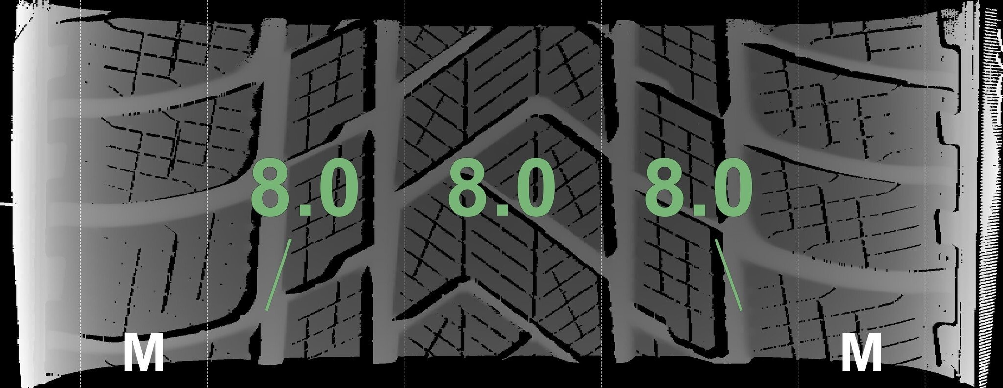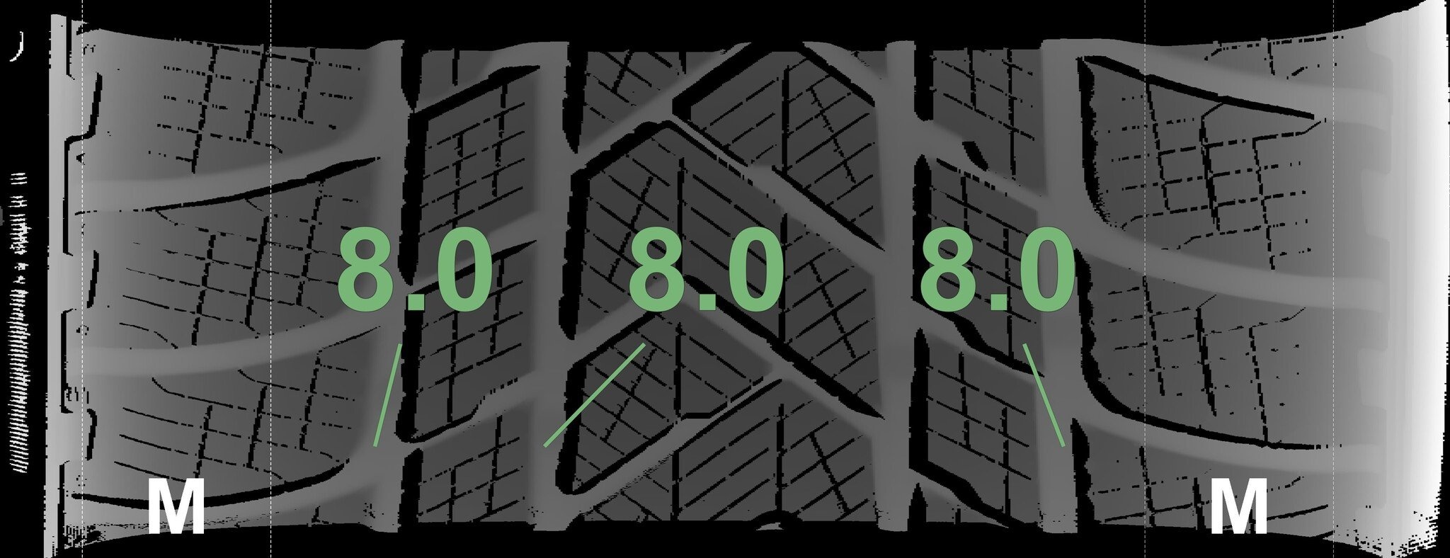 De gemeten profieldieptes en de details van de velgen zijn hierboven weergegeven.